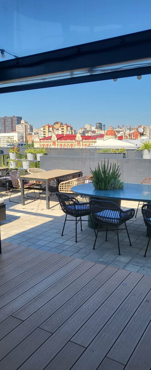 Прекрасный персонал, отличные интерьеры. Понравился ресторан на крыше. Рекомендую, самый центр города !