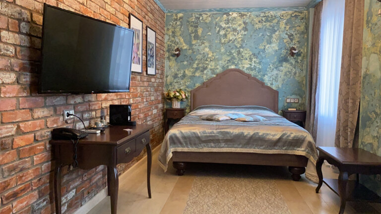 Номер очень понравился, чисто, красиво (на Чеховский манер). При гостиницы отличный ресторан Глупый француз. Очень советую. Редко бываю в Ростове на Дону , был в пару отелях и могу сказать точно: этот на твердую пятерку, даже с плюсом! ))