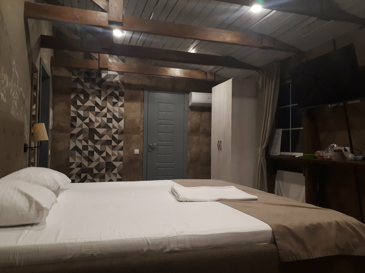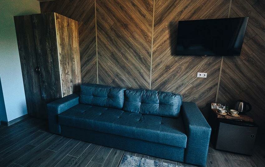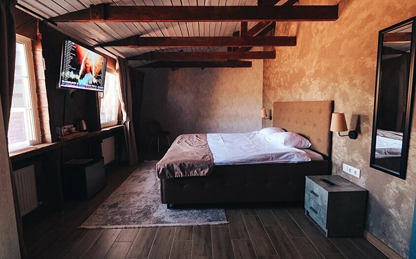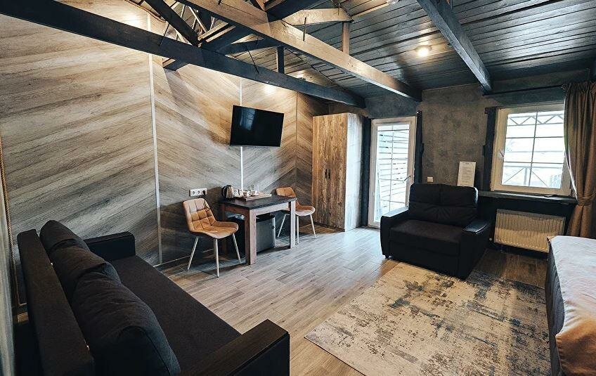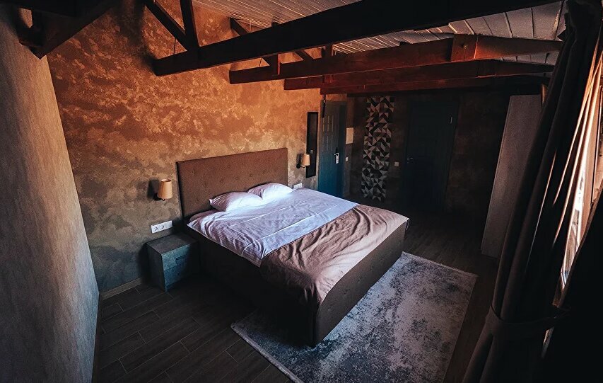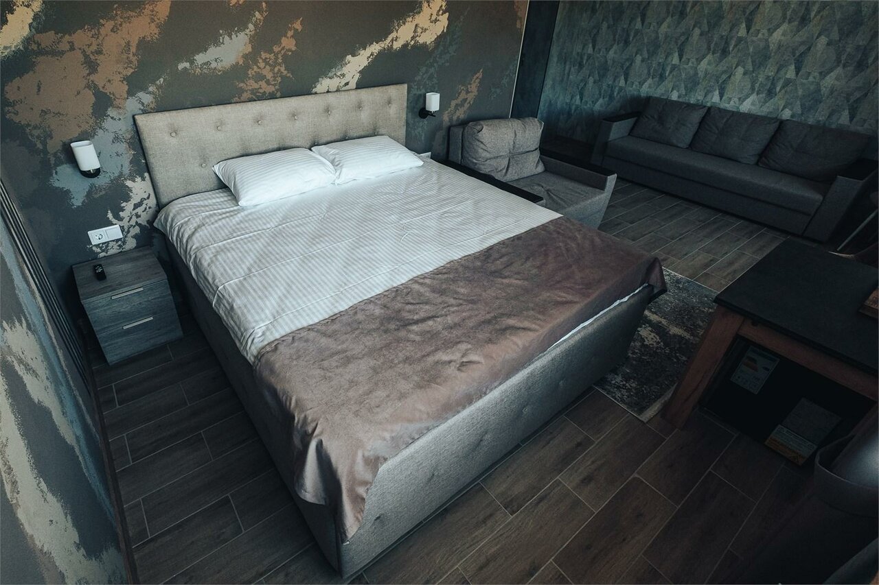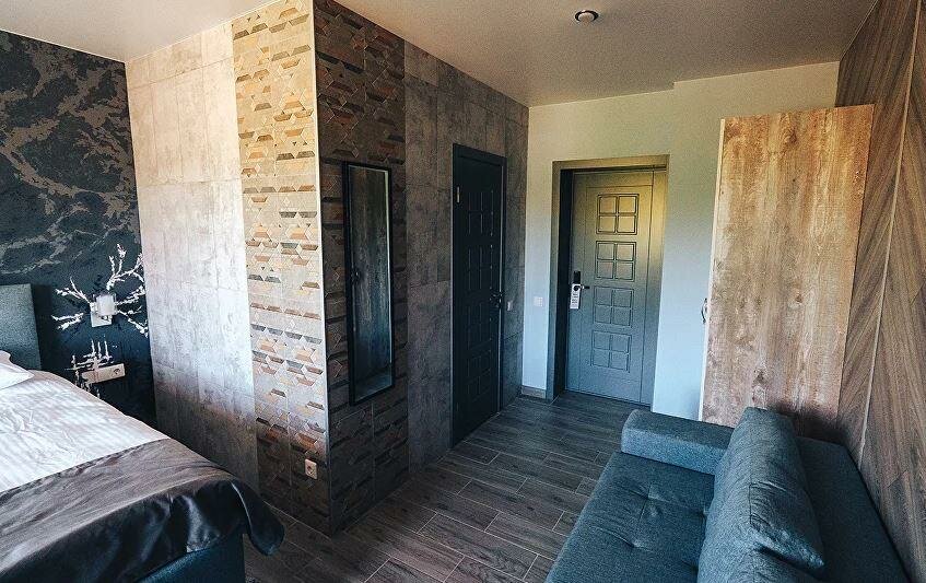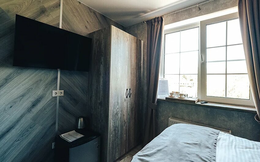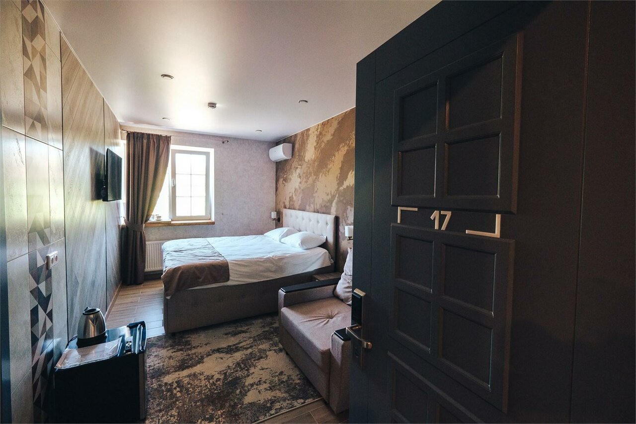 В бывших помещениях завода сделали добротный ремонт и открыли действительно хороший отель при СПА. Чисто, новая мебель, в номерах есть все необходимое, от тапочек до халатов, фен, гигиенические наборы, чай/кофе и даже холодильник.