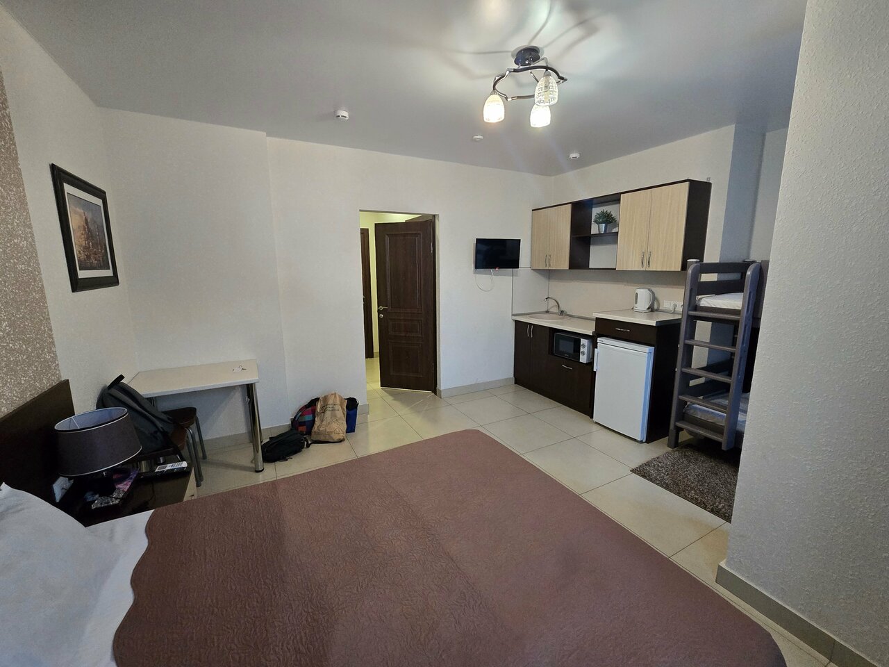 Отличный отель !!! внизу находится магнит в этом же здании, для детей есть большая комната отдельный номера, отдельно туалет душ отдельно кухня есть, также внизу есть кухня завтраком