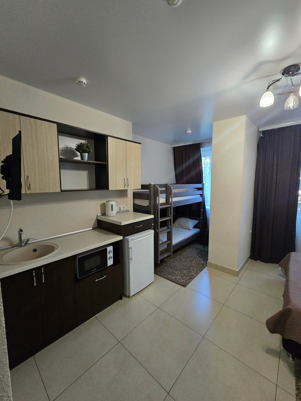 Отличный отель. Комфортные номера. Чисто, уютно. Рядом расположен Магнит. Возвращались с Крыма, там ночевали. Все отлично, рекомендую.
