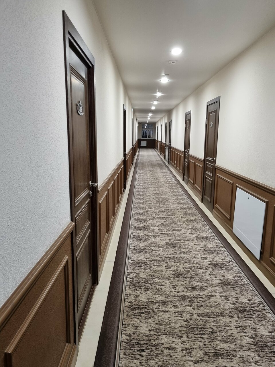 Отель в целом хороший. Расположен не очень близко к центру, рядом проходит железная дорога. Номера удобные, просторные. При заселении было чисто. Расстроили только полотенца в пятнах, такие уже нужно изымать из обращения в отеле. На простыне тоже было пятно. Это немного подпортило впечатление. В номере есть кухня, что удобно. Хочется отметить работу администратора Татьяны. Она очень приветливая, готова помочь в любом вопросе. В номерах тихо. Мы хорошо выспались.