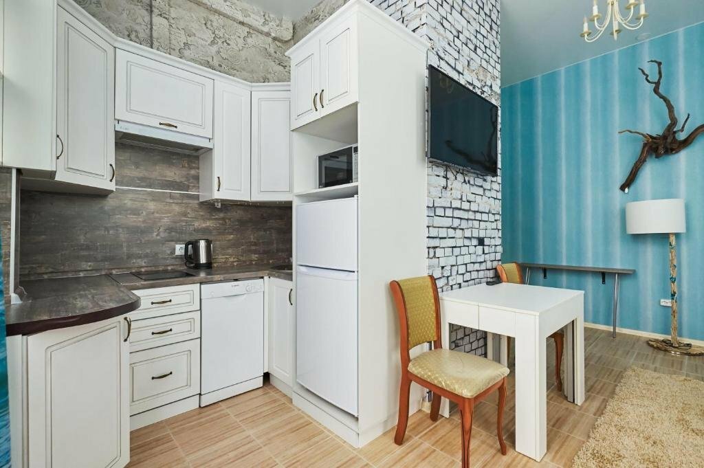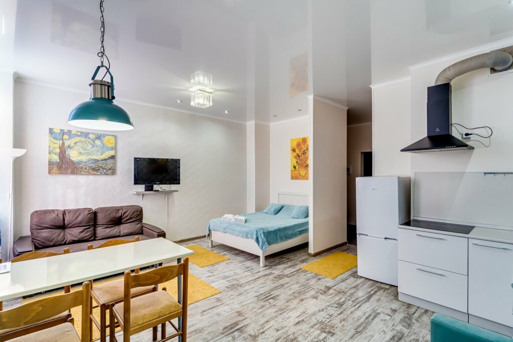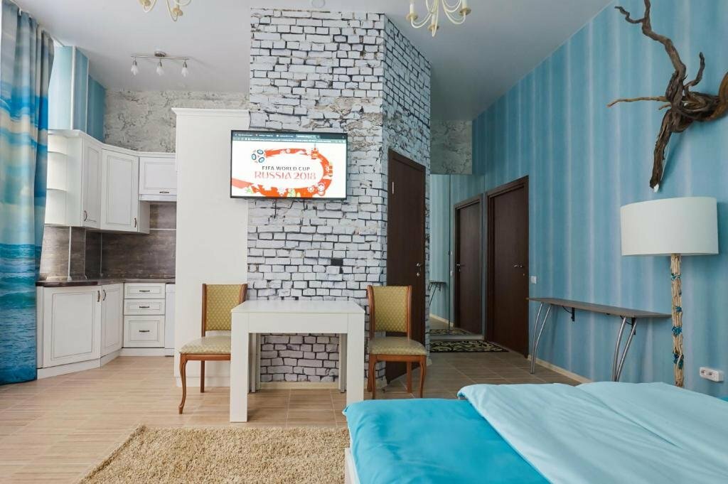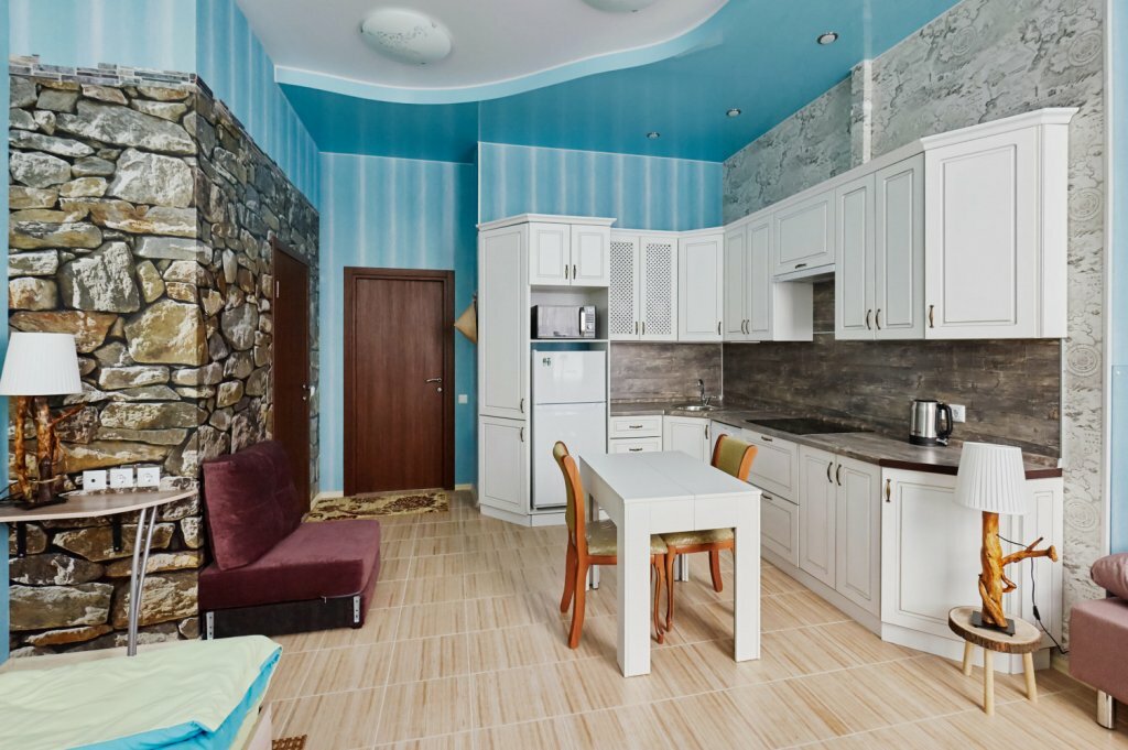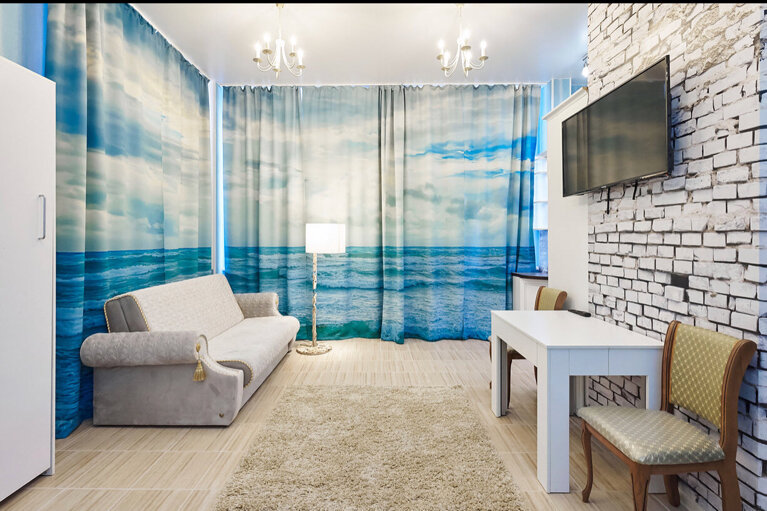 Гостиница понравилась. Уютная студия. Вся необходимая бытовая техника, включая микроволновку, холодильник,электроплиту, миксер, посудомойку и даже министиралку! Нам с мужем было очень удобно. Есть небольшая парковка во дворе. Рядом Пятрки