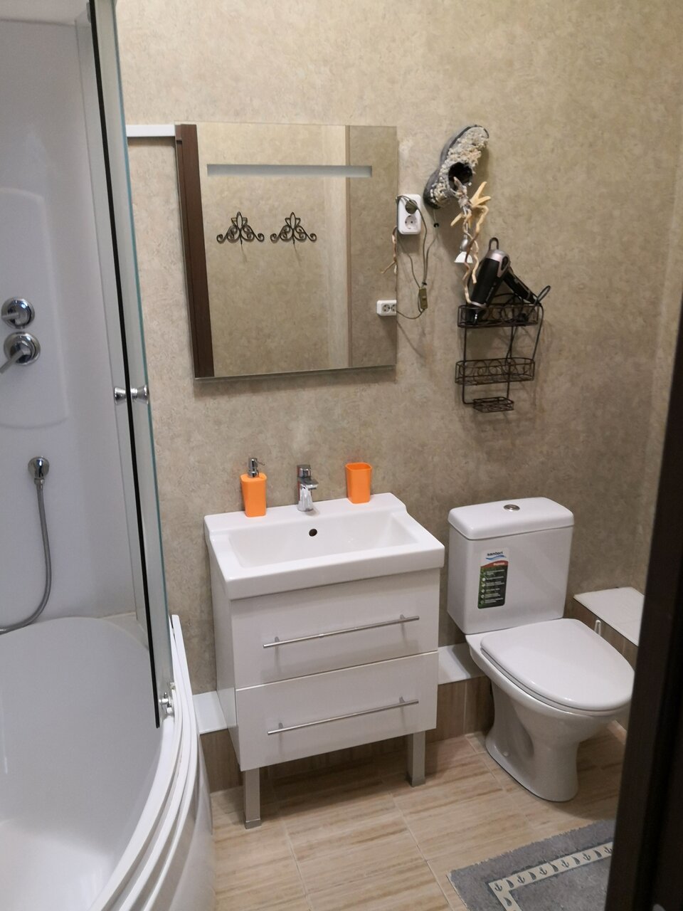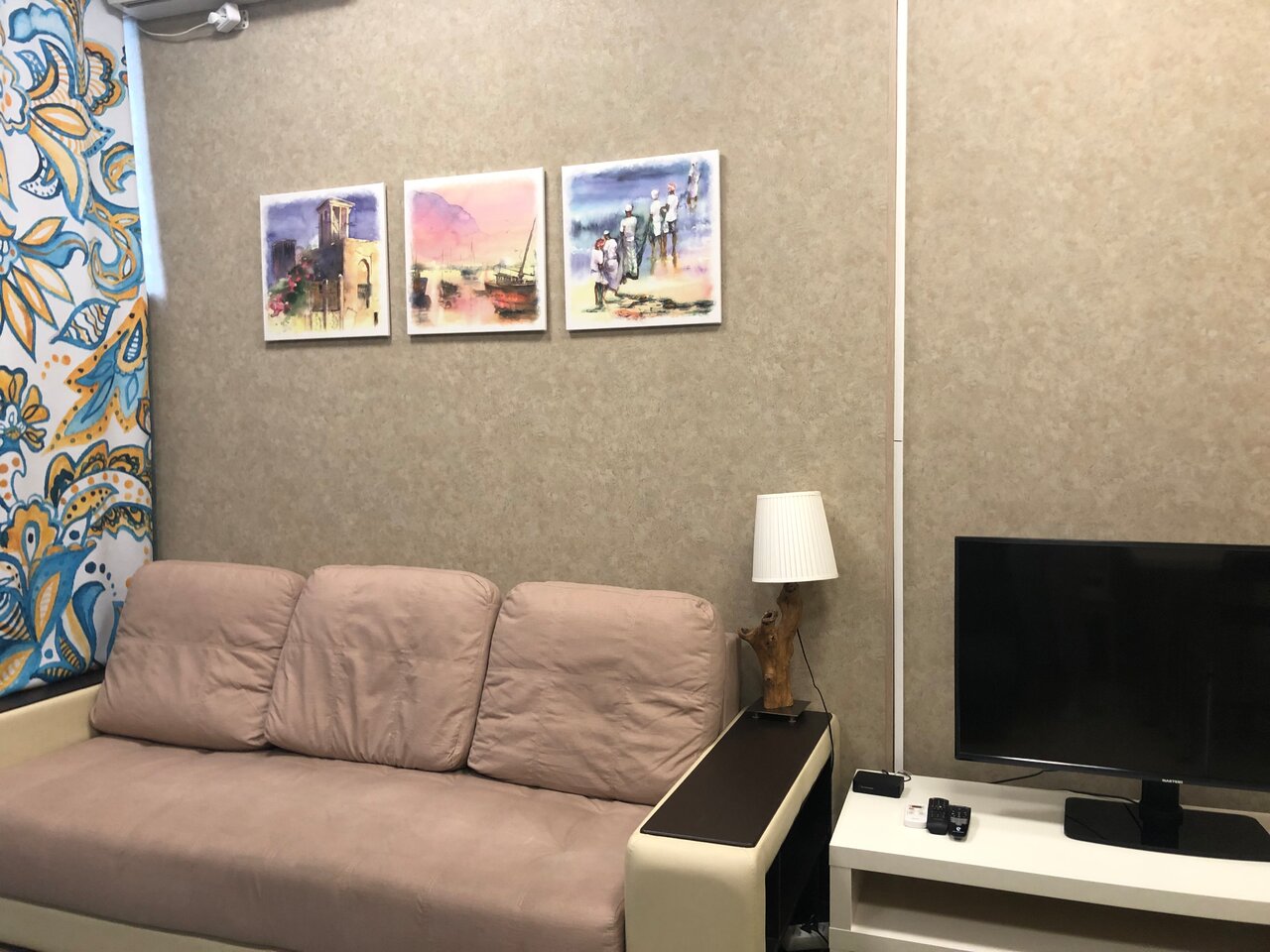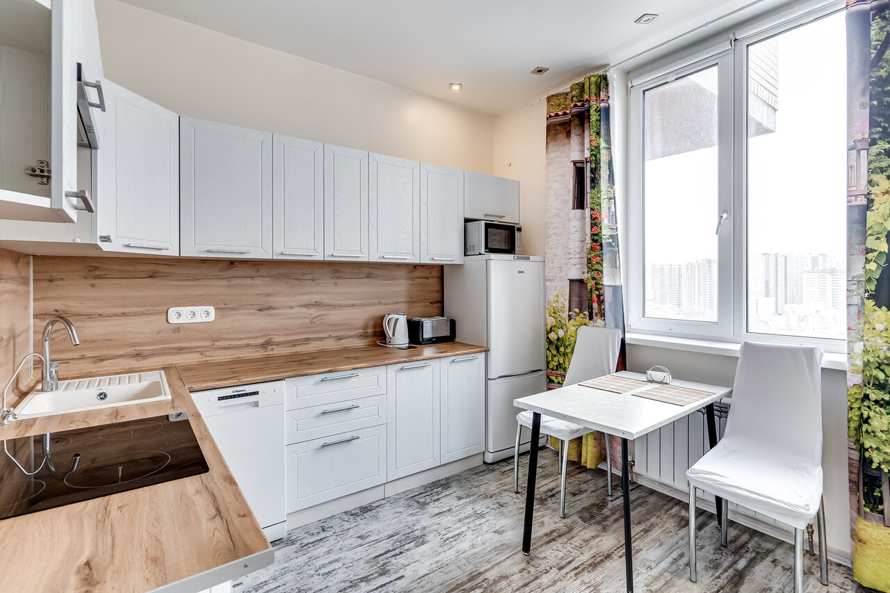 Очень странное,,заведение,,никто не встречает,ключи в каком то сейфе в подъезде,никто ничего толком не объясняет, только по телефону.душ работает плохо,пол холодный,место спальное для четвертого человека находится в холодном балконе,есть фен,утюг,посуда самая необходимая.не так уж всё и плохо но впервые останавливались в таком месте странном.3500 дороговато за однокомнатную квартиру, ещё и список штрафов весит(не курить,не шуметь,с соседями не ругаться,посуду грязную не оставлять итд)при заселении требуют залог.