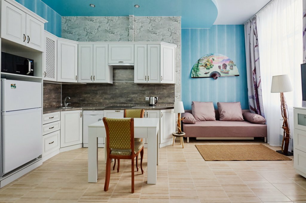 Номер сакура- не рекомендуем!!! Грязно очень, пятна на постельном белье, стульях, холодильник выглядит так, как будто его не мыли месяцы. Апартаменты находятся на первом этаже, окна выходят в соседний дом! Находится в апартаментах было не приятно. Санузел чистый, но вся сантехника старая. Машину поставить негде, очень плотно, кружили вокруг дома несколько кругов!