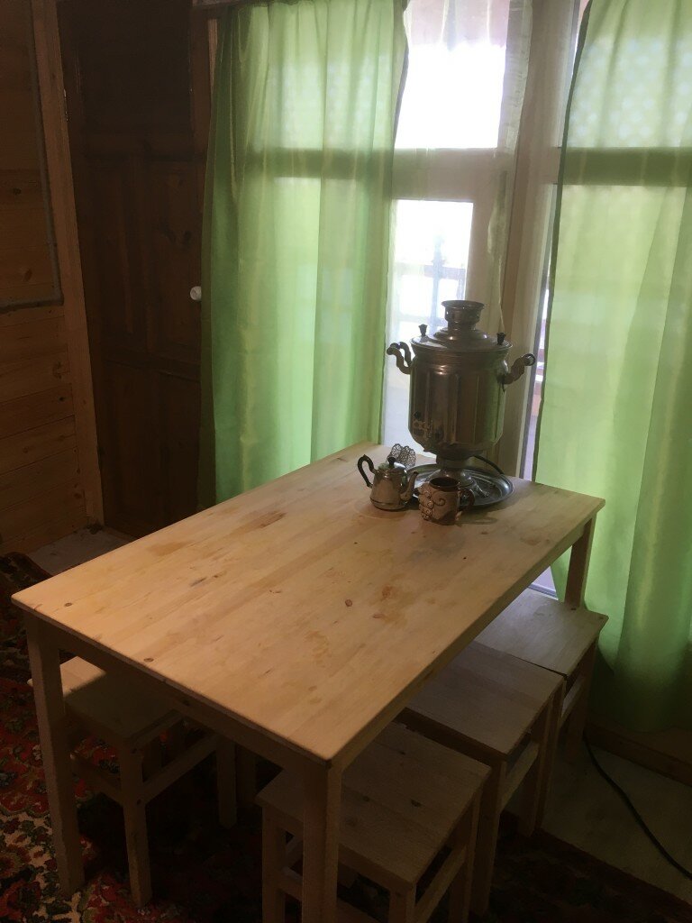 Это не домики. Это 2 этаж 2х этажного служебного сооружения на краю футбольного поля, сделанноготпо типу кунга (железо с утеплением). В комнате есть все, что нужно для краткого (ночь) отдыха. Могут играть на поле парни местные до 11-12 ночи, но стеклопакеты хорошие, звуков нет. Свет нейтрализуется шторами. Спать можно. Магазин через дорогу, света нет по дороге в магазин, берите портплощадки за забором будет. фонарик. Ну и рядом протекает речка-вонючка канализаторка… идти в магазин через запахи… А так то все норм, хозяин — нормальный, доброжелательный товарищ, машина на территории спортплощадки, за забором будет рядом. Нормально.
