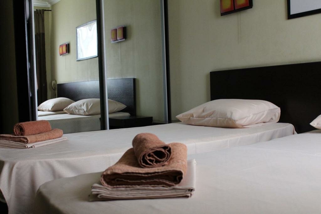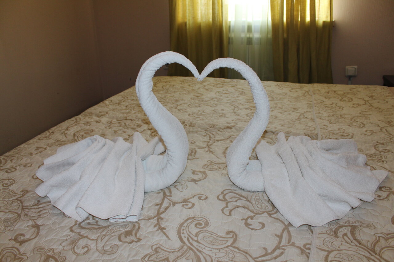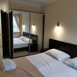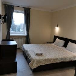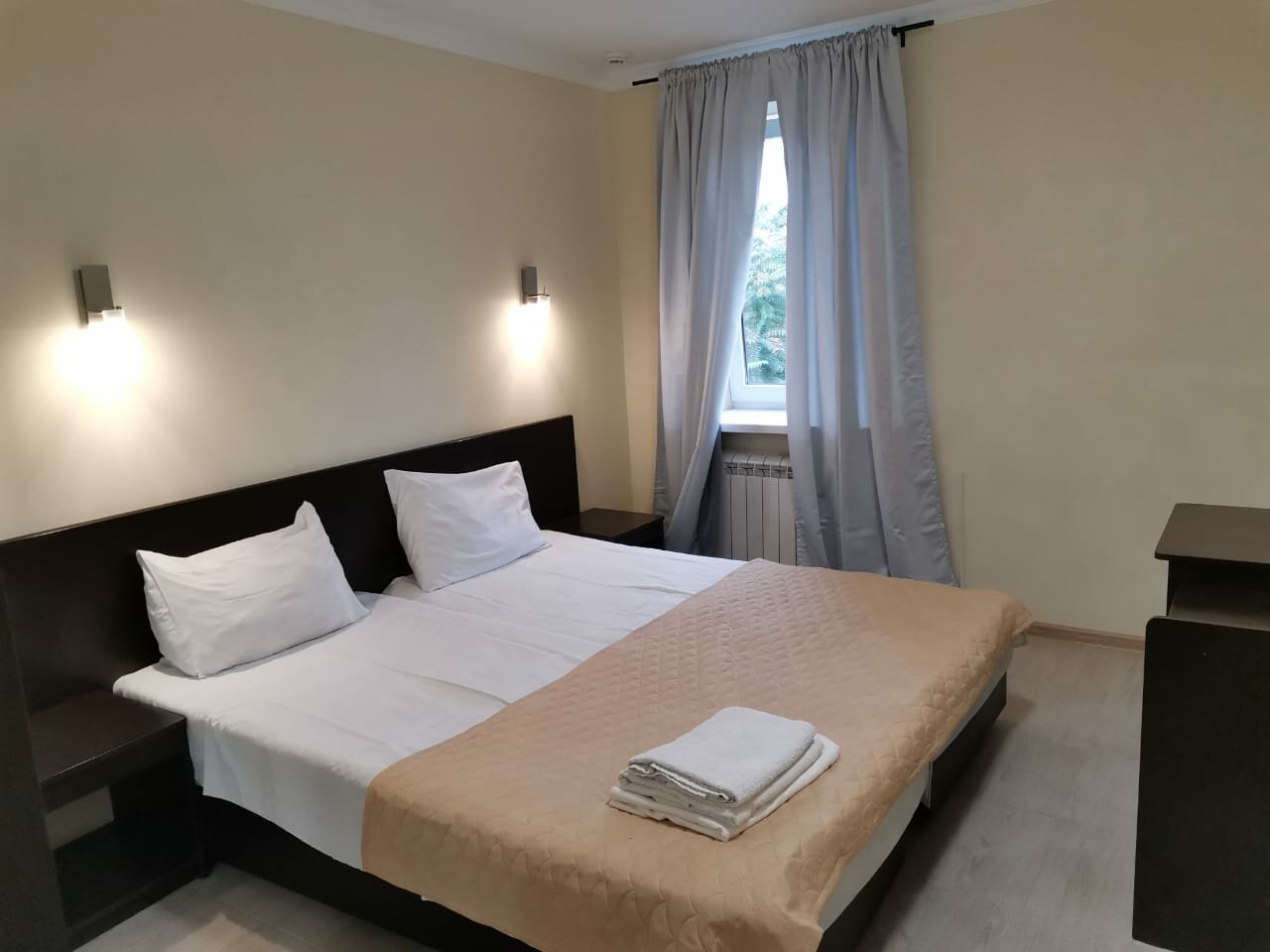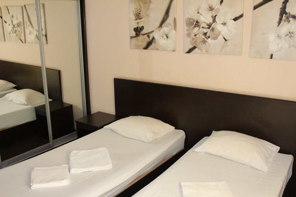 Светлые номера с двумя отдельно стоящими кроватями для комфортного проживания. Подойдет для друзей, коллег по работе и родственников. Горячая вода круглосуточно. Зимой отопление.