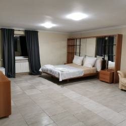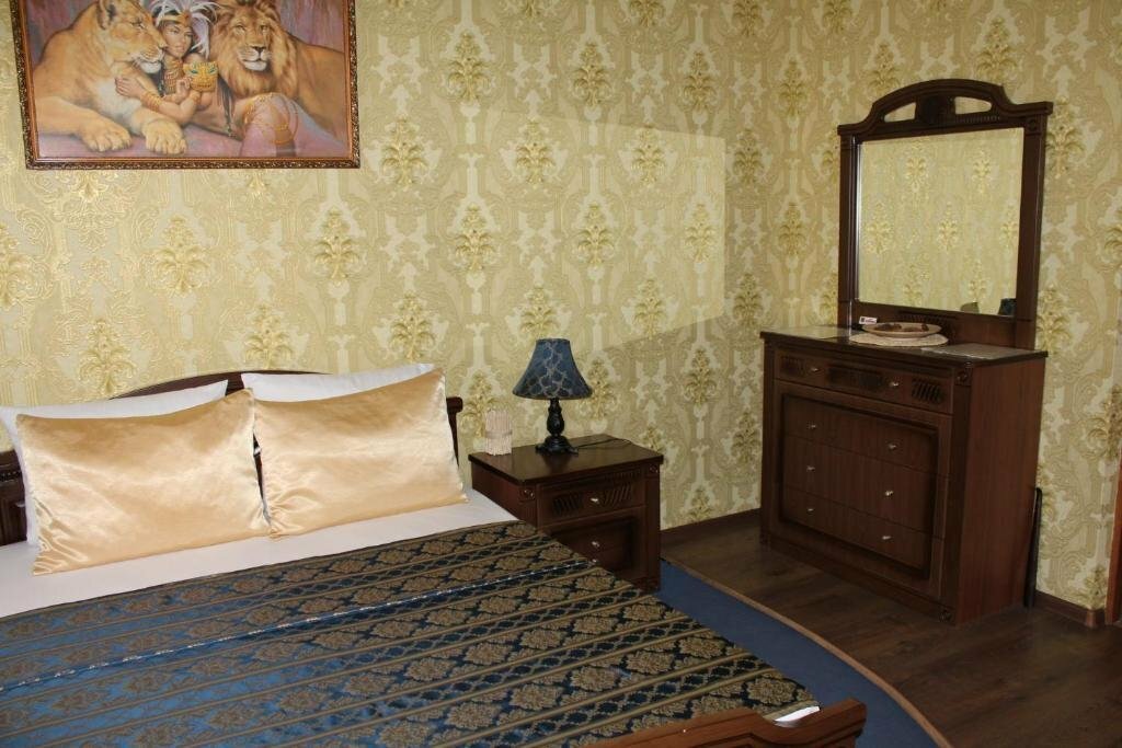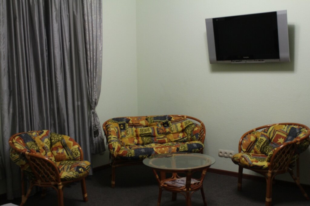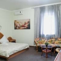 Удобства: — Номера (от 1800 ₽/ночь) с кондиционером, Wi-Fi, холодильником, санузлом. — Парковка бесплатно, платный трансфер (аэропорт/вокзал). — Ресторан, бар, сауна (платно), бизнес-центр, камера хранения. — Для гостей: завтрак (по меню), массаж, прокат авто, детские кровати (бесплатно до 3 лет). — Разрешено проживание с животными (платно).