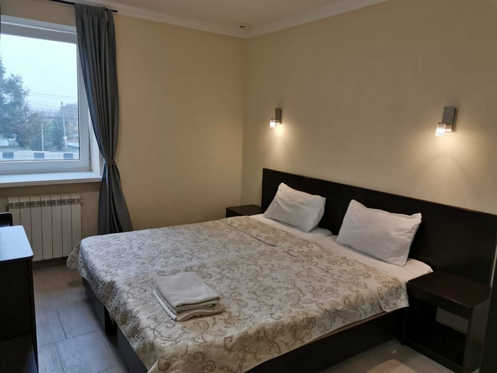 Бронировали одно, по факту предоставили другое . Номера прокурены. Уюта ноль. Крашенные стены, пол плитка. Ни ковра, ни фига. Вместо штор просто квадратная ткань. В номере глухое окно. Проверить не возможно . Задыхались ночью. Шум с дороги. Кровать раздолбана. Диван раздолбан. Телевизор не показывает. Было пасмурно и небыло сигнала. Слышимость будто стен нет вообще. На столике стояла посуда. Две рюмки и один стакан. Короче с детьми намучались. Это место больше похоже на хостел для работяг.