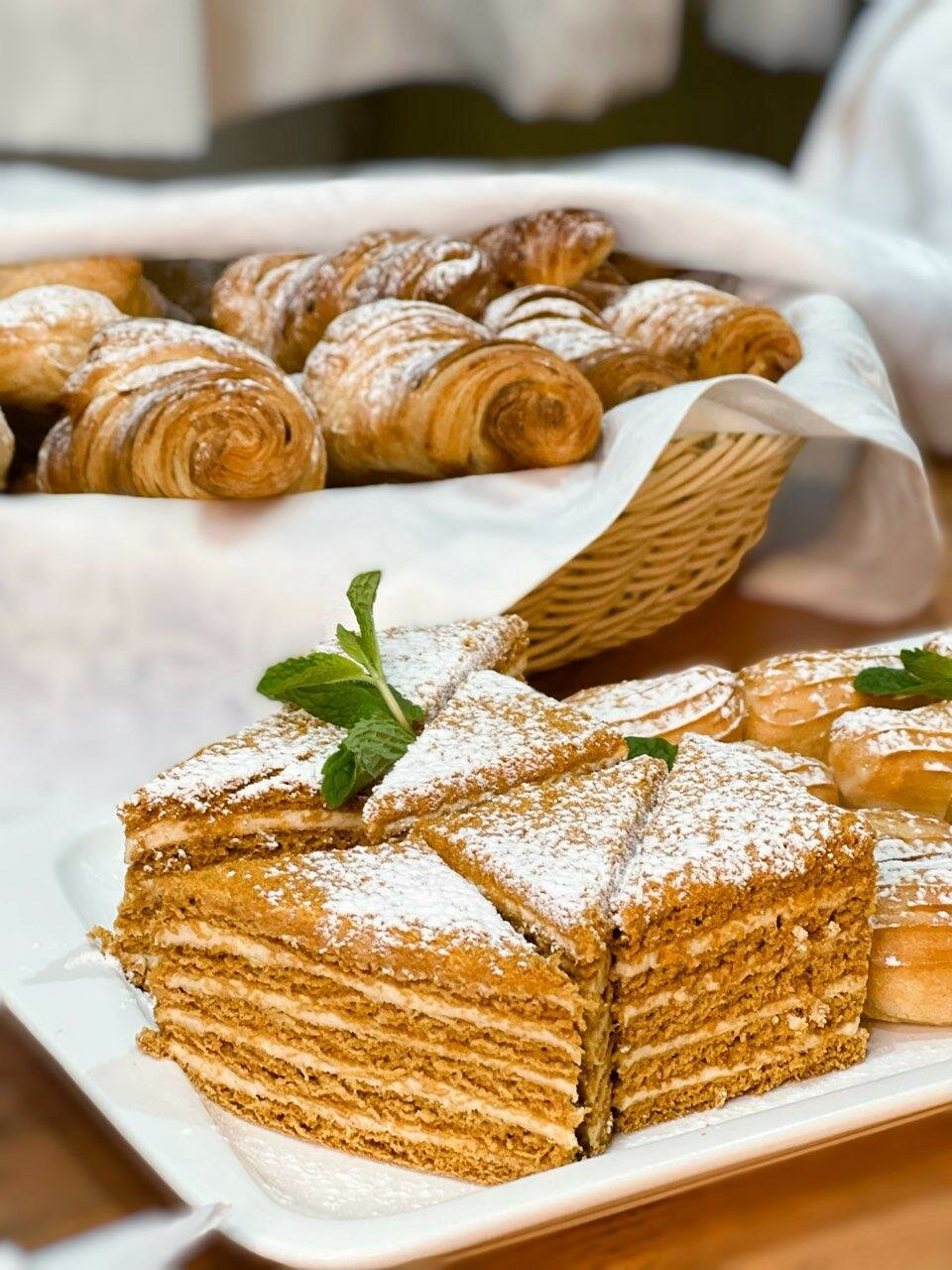Каждое утро для Вас мы накрываем завтрак в ресторане «Эрмитаж» с горячими блюдами и домашней выпечкой.В будние и выходные дни: c 07:00 до 10:00