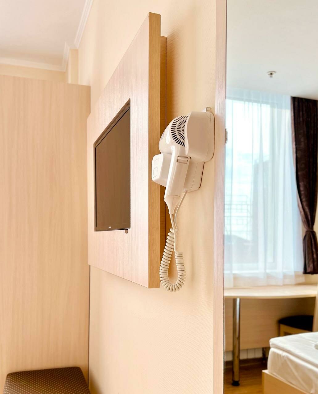 - Все необходимые принадлежности в номере (тапочки, зубная щетка, фен, холодильник, телевизор).