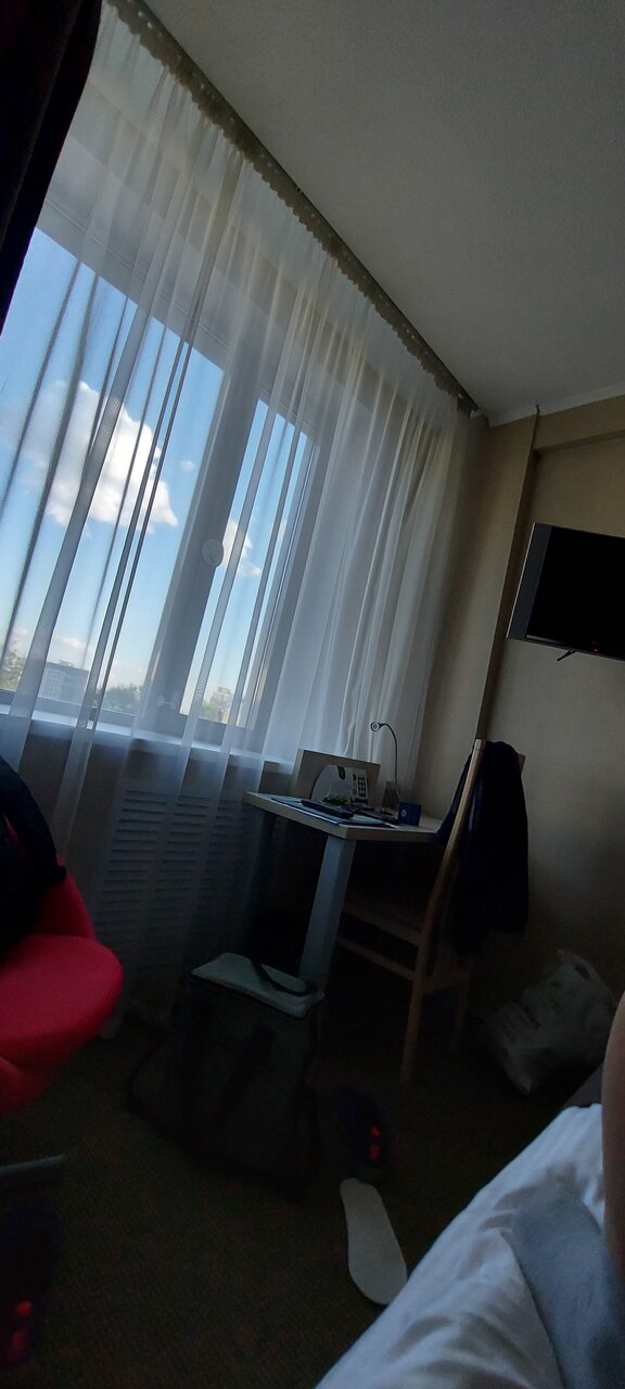 Вид из номера на 14 этаже — восторг. При заселении сообщили, что в качестве бонуса улучшили категорию номера — приятно Есть парковка платная и бесплатная. Мест не много. При оплате парковки дают фискальный чек (мне важно для отчёта по командировке) В номере вода (не пополняли, есть кулер на этаже), чай-кофе, сахар. Все необходимое в ванной. Отличный завтрак на 2-ом этаже. Быстрое обслуживание в номерах. Идеальное расположение в центре города, особенно если приехали на конференцию мед.университет:)