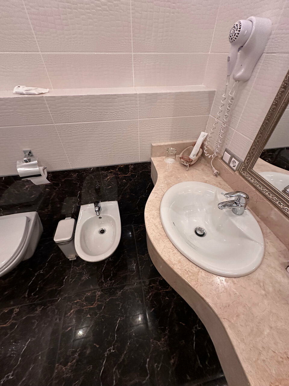 Прекрасное место. Большие номера, чистейшие и уютные. Полетенце, халаты, постельное белье белоснежные. Интерьер современный и лаконичный. Шведский стол и ароматный кофе из кофемашин. 10 из 10.