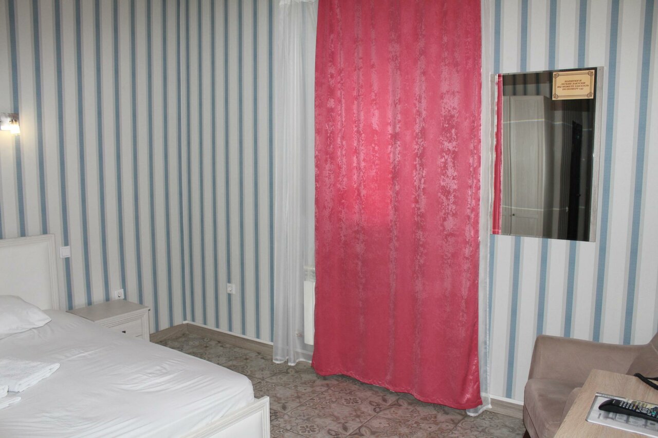 Я не знаю, кто и за что ставит этому отелю высокие баллы, но это просто отвратительно. Тончайшие стены, двери с дырами со всех сторон. Я слышу что происходит во всей гостинице, хотя номер в самом конце коридора. Уснуть нереально. Взяли на одну ночь поспать после дороги, а уснуть не смогли. После того, как затих шум коридора, стало слышно, как вода по трубам бежит. И такое ощущение по громкости звука, что она изливается прямо на пол в номер. Для двухместной кровати дали односпальное одеяло, которое даже не заправили. Простынь под кровать тоже не подходит, она даже не заправляется Сплошной кошмар! Никому не рекомендую. Покоя здесь точно не найдете, если, конечно, не выпиваете или не берете беруши!!! Зря доверились отзывам.