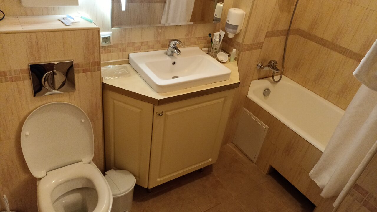 Обслуживание отличное, в гостинице есть ресторан, где можно вкусно покушать, но по цене довольно дорого. Сам номер мне попался с рваными обоями, которые закрыли обогревателем. В номере было довольно прохладно (ноябрь месяц), а в ванной вообще холодильник ((
