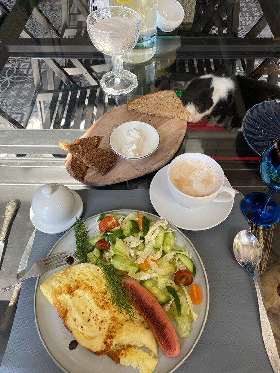 Какой же невероятной красоты отель!! Каждый номер — дизайнерский шедевр. Идеально для фотосессий )) Если Вы за эстетику, гармонию и уют — Вам сюда! Особо порадовал дружелюбный кот Семён, с ним так по-домашнему тепло сразу, и отзывчивый и клиентоориентированный персонал. Идут навстречу во всех вопросах, которые в силах решить. Также хочется отметить завтраки. Вкусно, разнообразно, полноценно!! Лучше здесь, чем в кафе! Обязательно воспользуйтесь услугой, тем более всего 500. Есть у отеля два нюанса: прохладно в межсезонье (первую ночь я прям долго не могла согреться), во вторую уже нагрелась комната и было тепло, поэтому если Вы теплолюбивы, просите заранее включать обогреватели; с пятницы по воскресенье по ночам шумно, так как центр, молодёжь тусуется. Машины газуют до 6 утра. Беруши не спасут. Если Вас не тревожит шум, то для Вас это идеальный отель. В целом это 10 из 10. Сюда хочется вернуться.