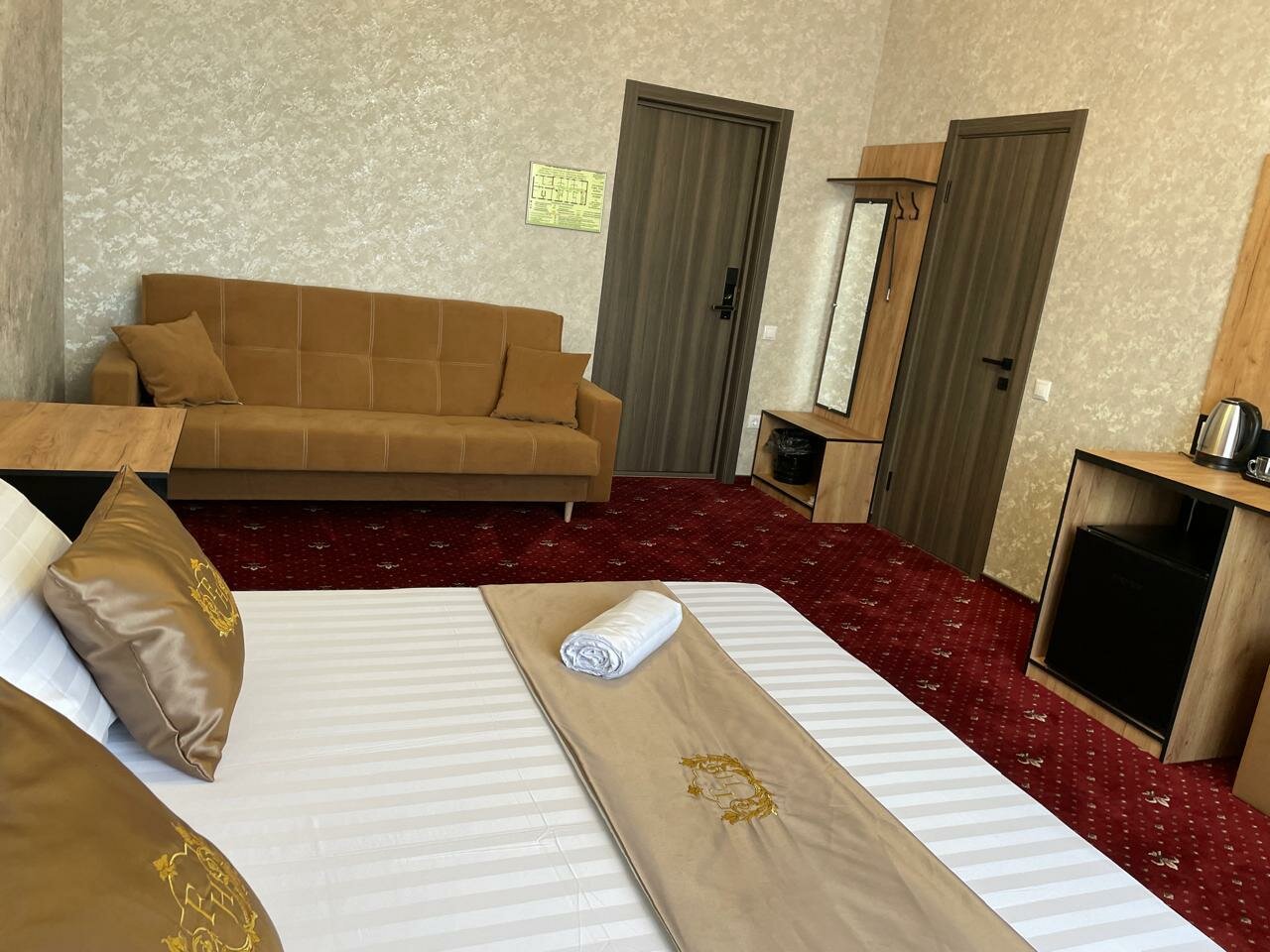 Прекрасный отель. Ехали на юг, позвонили заранее и забронировали. По приезду нас доброжелательно встретили. Номера уютные и чистые. Отель расположен не далеко от северной объездной дороги. И если у вас путь в Крым по возвращенным территориям то эта гостиница самое то для отдыха. При отеле удобная стоянка для авто. Завтрак. Рекомендую.