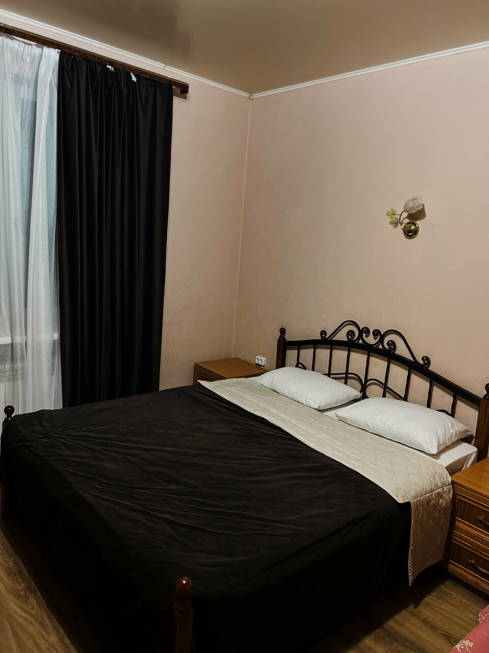 Отличная гостиница что бы остановится на ночь. Остановились переночевать по пути в Сочи, номер чистый мечта достаточно, есть все необходимое: кондиционер, телевизор, маленький холодильник, туалет душ в номере. Цена/качество супер, 1300 за номер в котором большая удобная двухспальная кровать и одна односпальная неудобная (спиши на пружинах), кровати удобные, перед окном можно поставить машину под камерами, в здании есть пятёрочка. Единственный минус это запах табака!