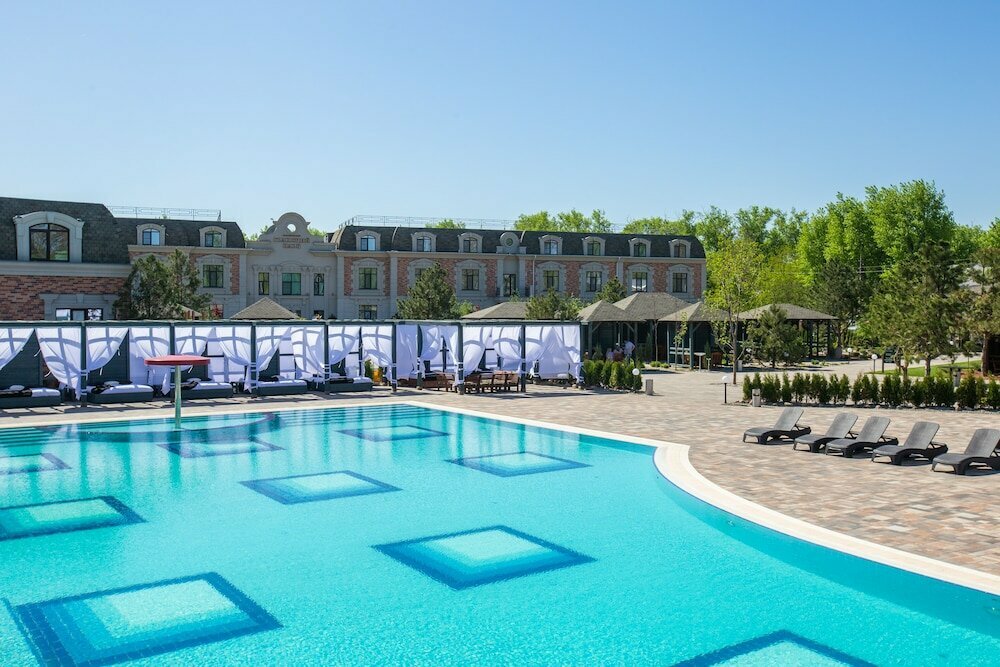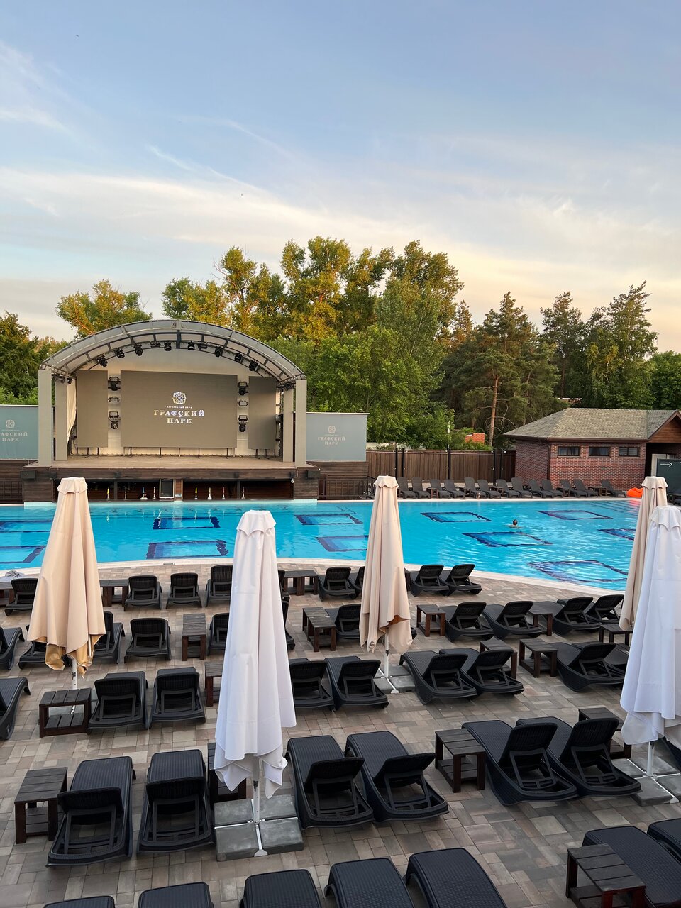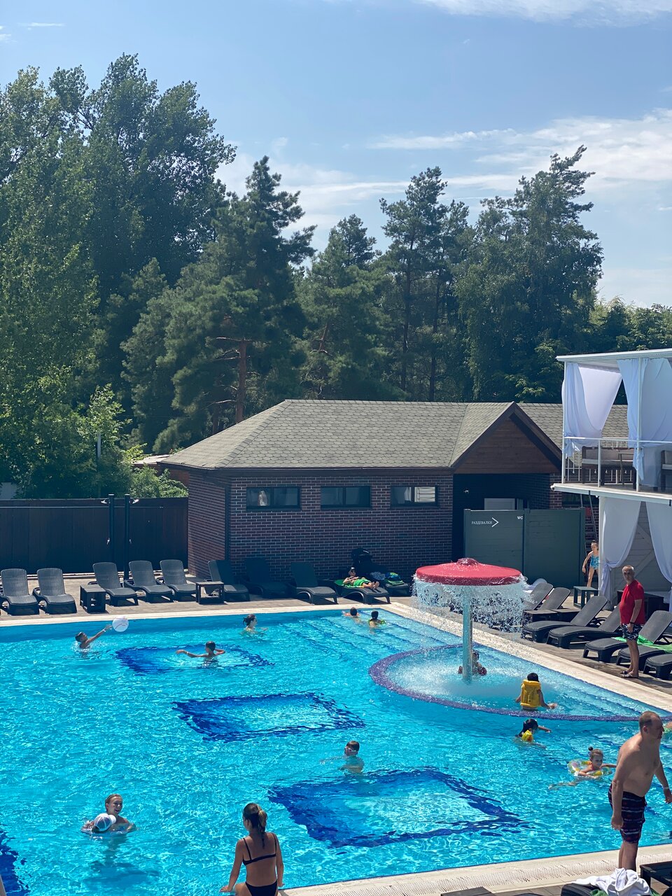 Очень понравилось людей не много. Бассейн огромный. Поесть нармально можно. Рекомендую. Территория огонь все красиво ухоженно. Ресторан. Бар. Покамгде я был на Левобережной лучшее место