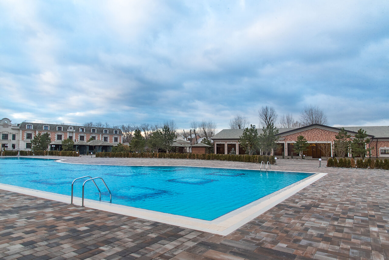 - Огромный бассейн (иногда с подогревом).; Большая посадка (подходит для корпоративов).; Подходит для свадеб и праздников.; Вкусная еда и напитки.; Красивый интерьер и дизайн.