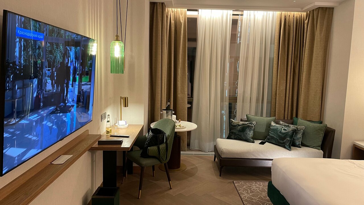 Номер ‘стандарт’ за 14500 руб в сутки. Самый лучший номер из всех, где я когда либо бывал. В номере есть всё: от утюга с гладильной доской до бесплатных орешков кешью и кураги. Телефон есть даже в туалете. Завтрак — просто невероятно круто! 5 сортов сыра, в том числе Бри.