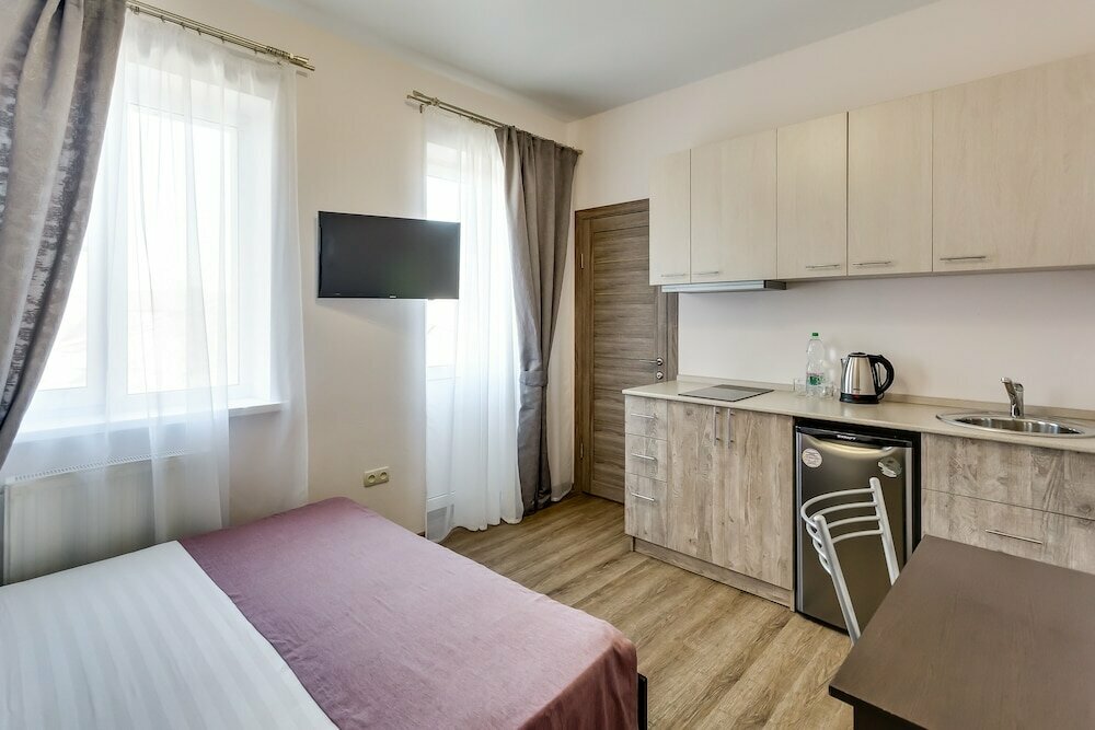 - Ежедневная уборка.; Чистые и уютные номера.; Вкусные завтраки с большим выбором.; Охраняемая парковка (бесплатная).; Наличие мини-кухни в номере.
