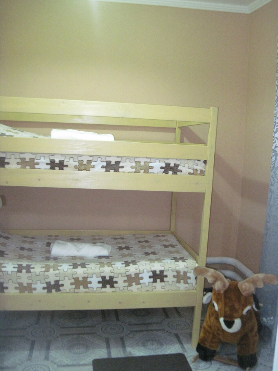 Заезжали ночью,без проблем заселили с детьми,у всех свои диваны,постель,мыльные наборы,все было.то что надо для ночёвки на один раз