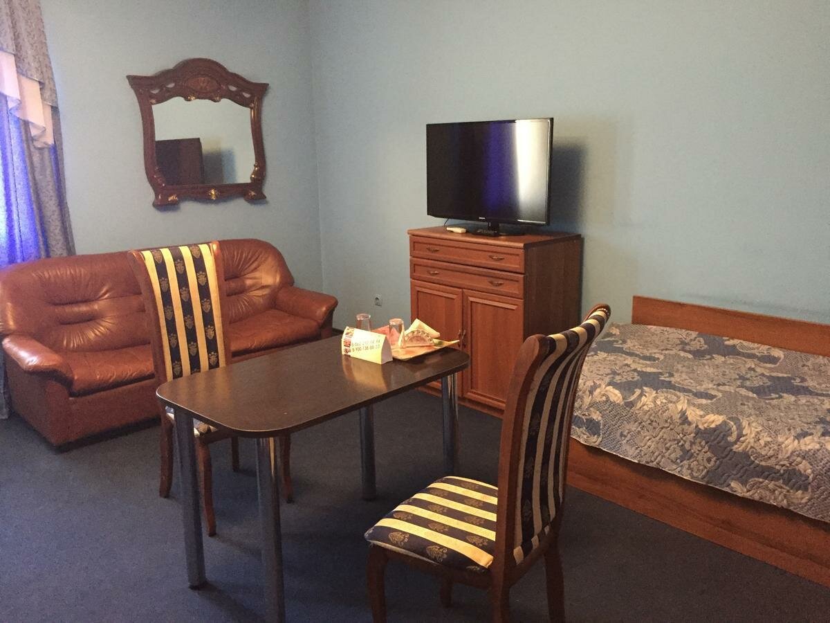 Ночевали два раза по пути на юг и обратно. Жили в семейном люксе. Все понравилось. Тихо, спокойно. Есть кондиционер, по просьбе дадут чайник. Внизу очень вкусная кафешка.