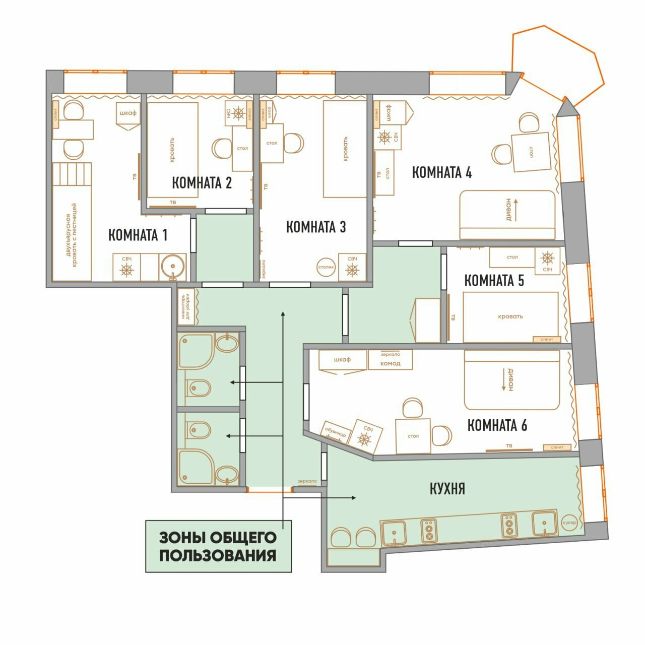 - Общая кухня и чистота в местах общего пользования.