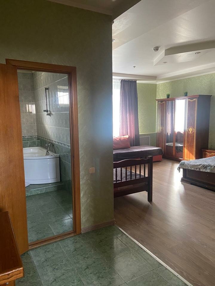 самое ужасное место для ‘плотских утех’ низкого качества. Вонь в номерах от канализации, прокуренные номера, пятна на простынях. Мужики играющие в бильярд попивающие пивко. Мы забронировали номера на соревнования детям! Администратор даже не удосужилась не пускать в эти дни мужиков.’Сильно буйных я угомоню, я сильная- был ее комментарий. Нет,нет и еще раз нет.