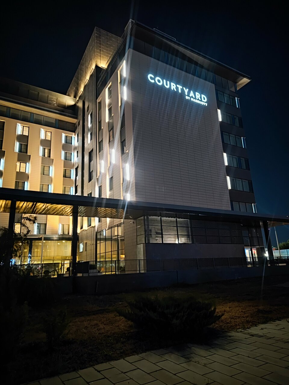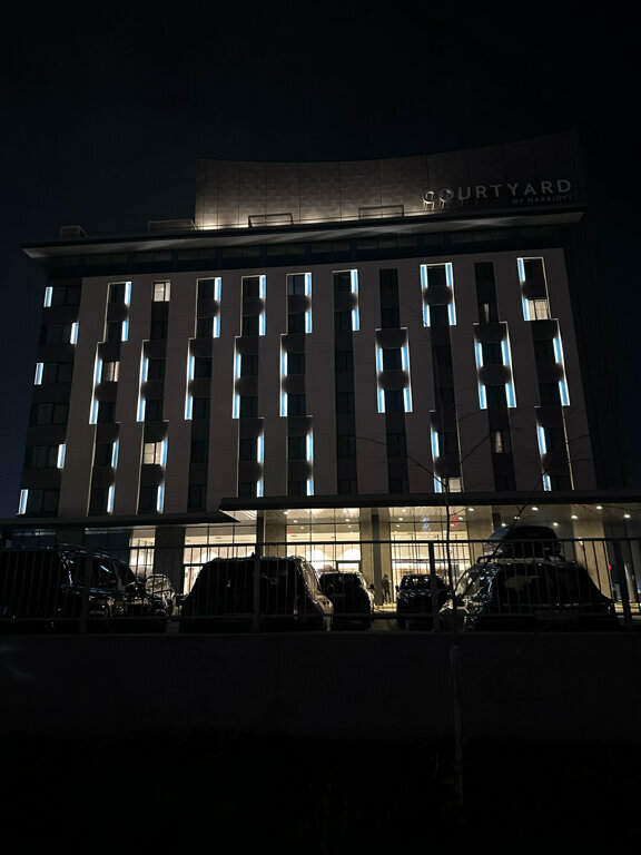 Ехали из Сочи в Москву и остановились в данном отеле на ночь. Выбрали его, так как Кортъярд — отель с хорошей репутацией, как считали мы ранее) Приехали в отель мы в 23:30, но заказать еду в номер уже не было возможным, если что отель 4 звезды! Для сравнения Мариотт в Краснодаре предоставлял питание в номерах круглосуточно! Помимо этого бар закрылся в 12, купить ничего нельзя было, так плюсом мини бара в номере нет. Внизу на первом этаже ночью обитают ночные бабочки) Но в защиту данного отеля, в Мариотте в Краснодаре они тоже были. Возможно эта фишка отеля данной сети Завтрак — шведский стол — кушать было особо нечего.. все невкусное, холодное, черного чая вообще нет Остались мягко говоря в шоке, короче говоря) Если едете на машине и ищите где остановиться, то советую выбирать Мариотт в Краснодаре. Там гораздо приятнее) несмотря также на небольшие минусы