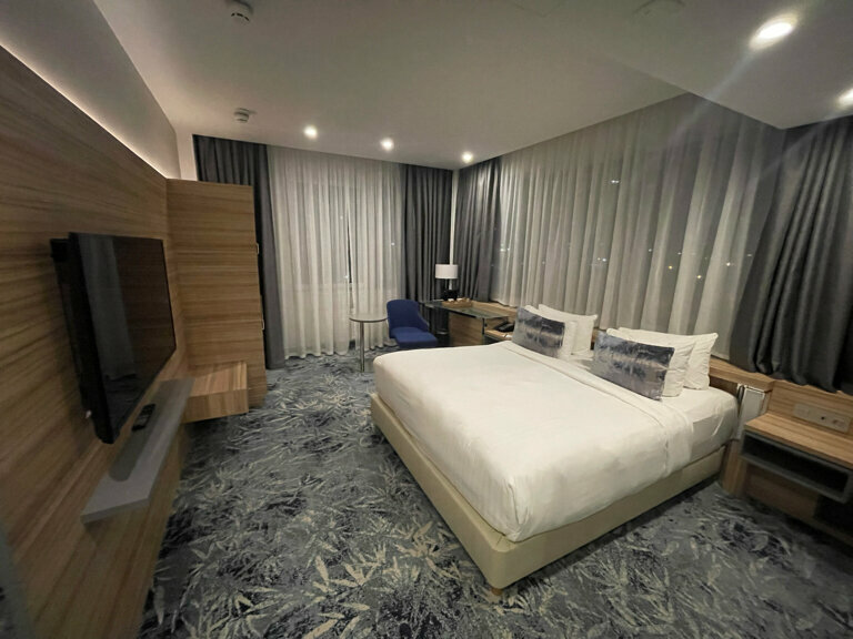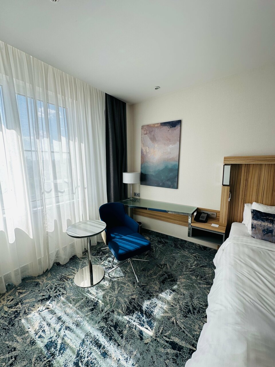 Очень понравился отель. Номера чистые, комфортные, видно что недавно открылся. Приветливый и отзывчивый персонал, вкусный завтрак, отличный тренажёрный зал. Хорошее расположение, а вид на город вообще делает отель уникальным.