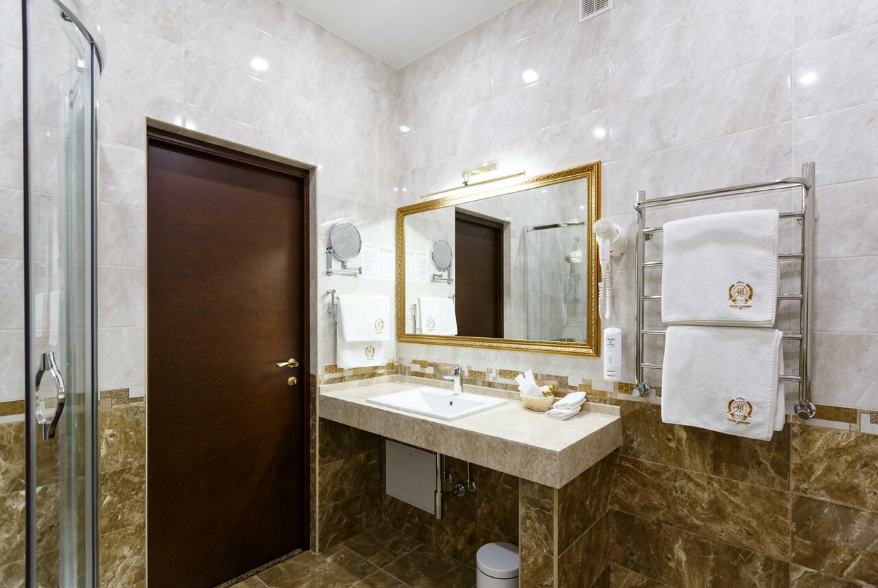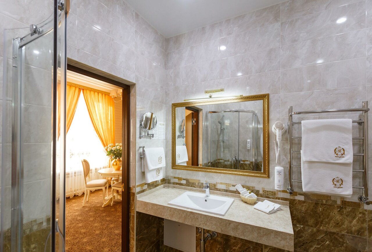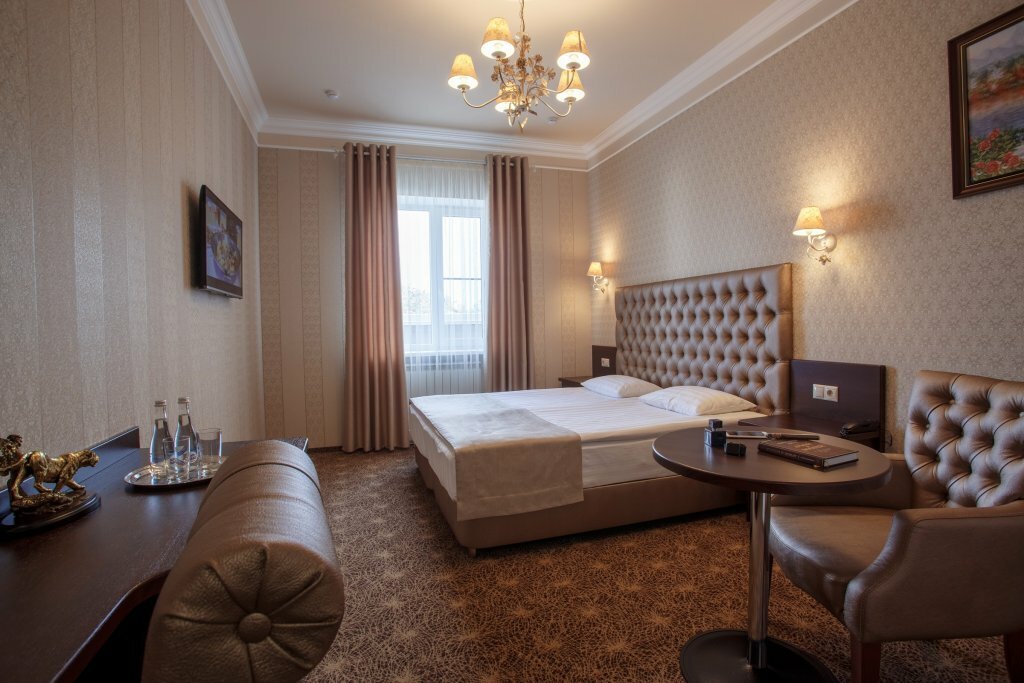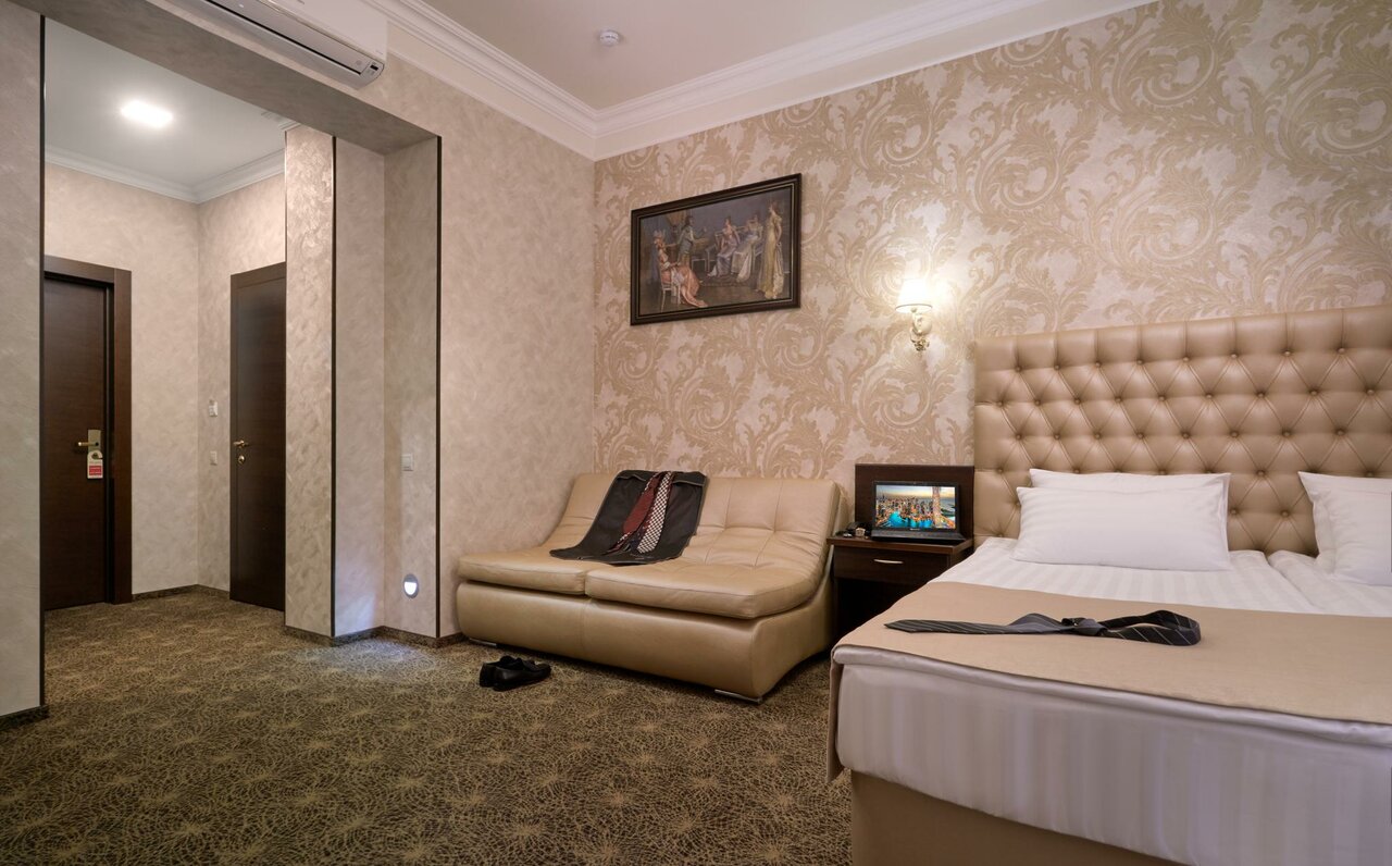 Просторная кровать, шторы black-out, телевизор с плоским экраном ( Smart TV), уютная зона для отдыха и эргономичное рабочие место, все это позволяет совместить работу и отдых. Ванная комната оснащена душевой кабиной.