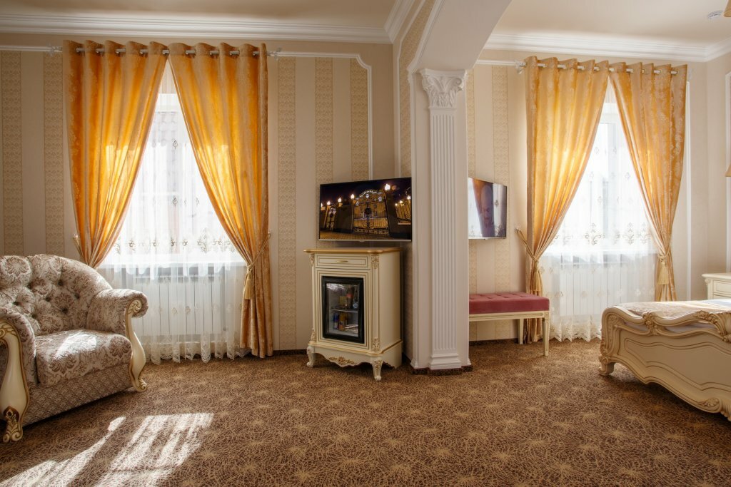 Услуги: номера с кондиционером, звукоизоляцией, гипоаллергенные, для некурящих; Wi-Fi, ТВ, мини-бар, чай/кофе, сейф, фен, халаты.