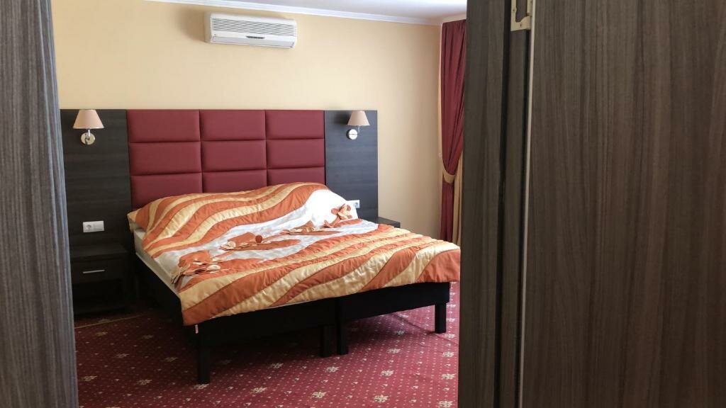 Просторный двухкомнатный номер с балконом. Рассчитан на 4 человека с возможностью установки дополнительного места. В номере: 1 двуспальная и 2 односпальные кровати, шкаф, 2 стола, 4 тумбочки, 2 телевизора, 2 сплит-системы, холодильник, сейф, санузел.