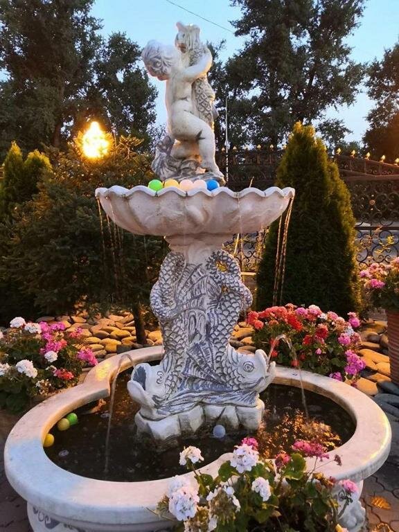 - Уютный дворик с фонтаном.; Доступные цены.; Чистое постельное белье.; Шикарный, просторный, чистый номер.; Возможность размещения с животными (за доплату).