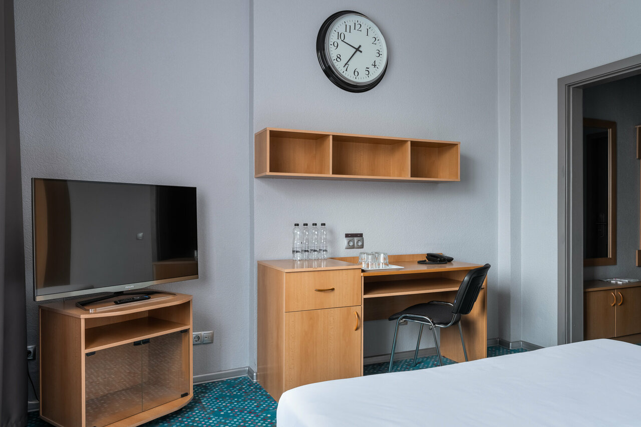 Отличное место, современный телевизор, приятный ухоженный номер. Тапочки имееются одноразовые, всё чисто и аккуратно.