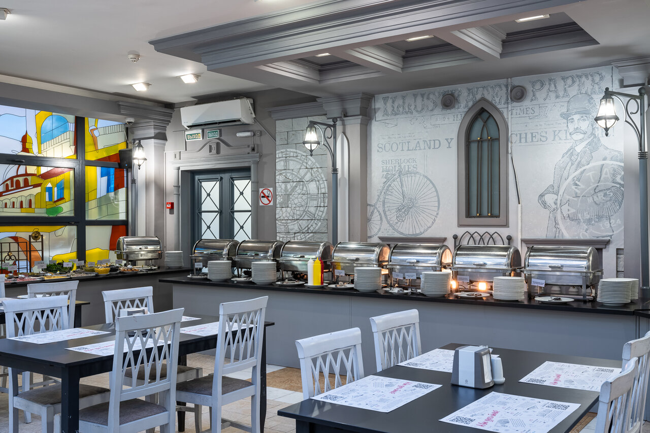 Расположение отличное.Ремонт косметический неважный,в номерах со времен СССР особо ничего не изменилось.Несоответствие цена качество.Парковка есть ,но мест на нем недостаточно .Есть шведский стол .Есть отдельно кафе цены высокие.Также есть бар со столиками в фойе.К слову, забыли в баре бейсболку новую попросили по телефону ресепшн выяснить ситуацию,пообещали разобраться и перезвонить …жду до сих пор.Одним словом кроме обояния сотрудниц и службу отвечающей за постельное белье(белоснёжное) всем остальным остался недоволен.