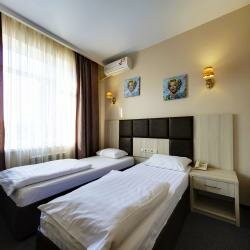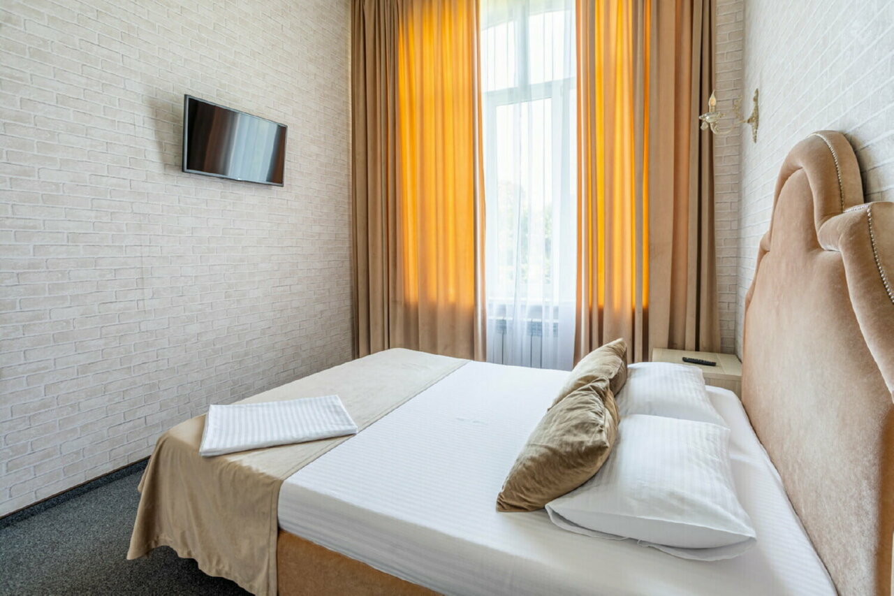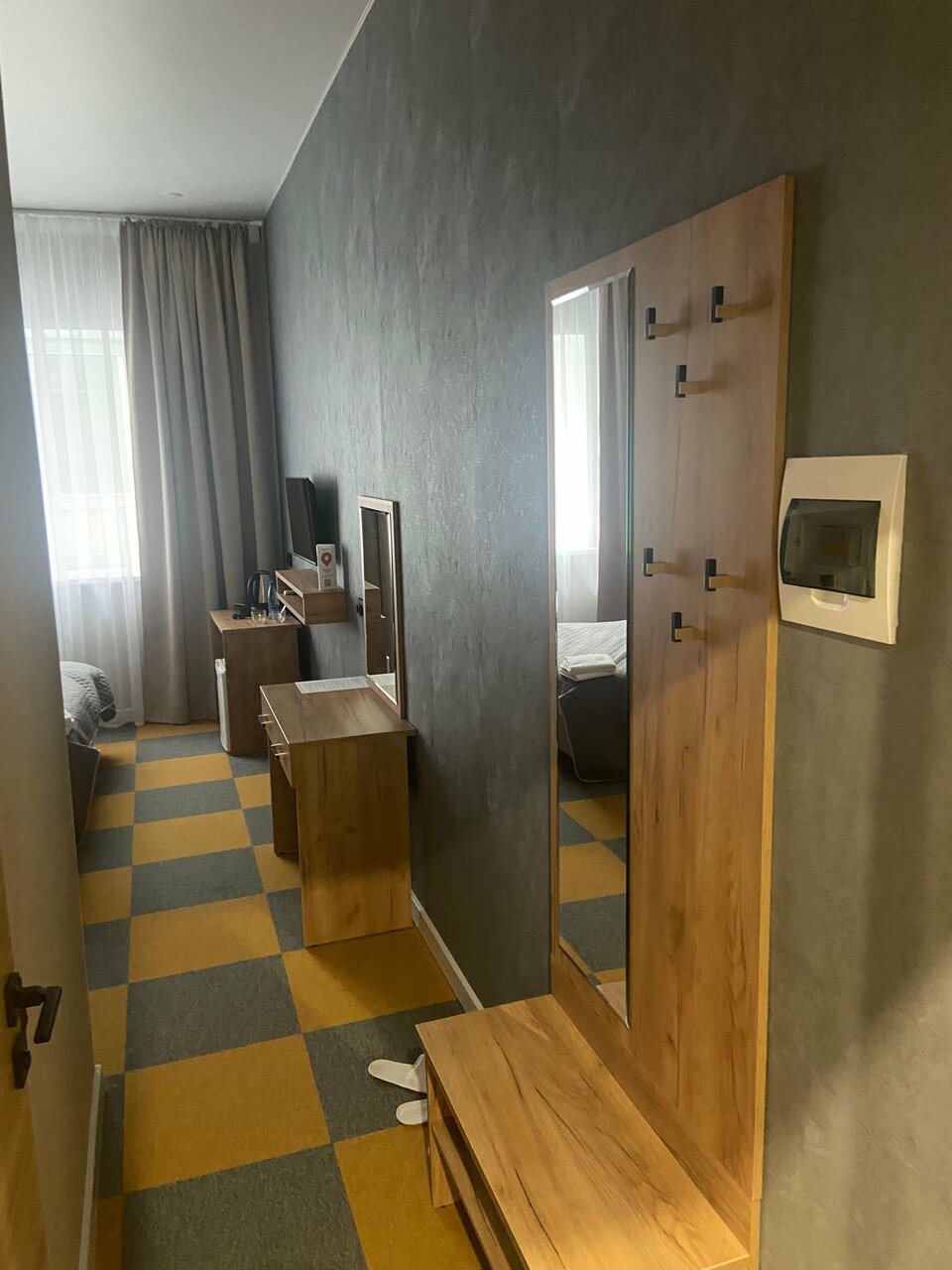 Номер сняли двухместный, в яндекс путешествия стоит цена ниже, в отеле оказалось подороже тот же номер! Дверь душа была сломана, стояла рядом, из-за чего было неудобно купаться, вода еле текла с лейки, слегка тёплая, набор гелей для душа шампунь и зубная щетка для одного, хотя нас было двое, простынь рваная в дырках, пододеяльник тоже с дырками, парковка оооочень маленькая, за это снизила оценку на одну звезду! Чистоту оценить не могу, внимание сильно не обратили, были уставшие с дороги, ну с первого взгляда вроде чисто! А ещё минус забыла сказать, в 3 ночи под окнами начали происходить пьяные разборки, хоть мы были на 3м этаже, но всё же ночью было это слышно! В остальном персонал вежливый, обстановка спокойная, ремонт и дизайн тоже понравился внутри здания! Если бы знакомые спросили где остановиться, я бы порекомендовала его!