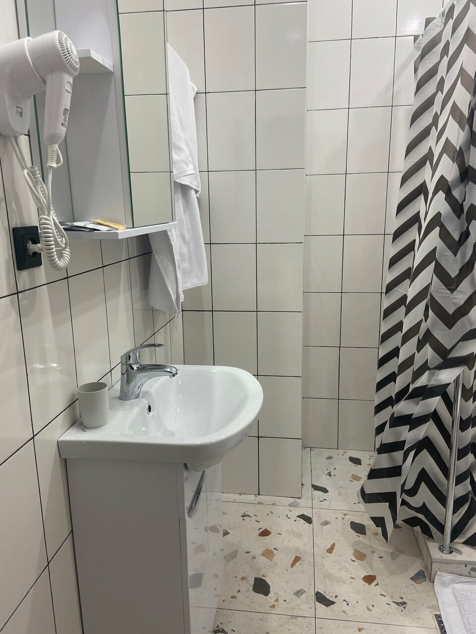 Номер чистый, но вот ванной душевая кабина явно нуждается в ремонте, двери закрываются неплотно, из за чего вода с душа льется на пол, так же где то в душевой кабине имеется герметичность поддона, из за чего тоже была небольшая лужа. Очень неудобный заезд, нужно ехать к ним медленно чтобы перед отелем не пропустить поворот, который никак не обозначен.