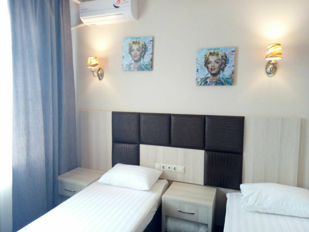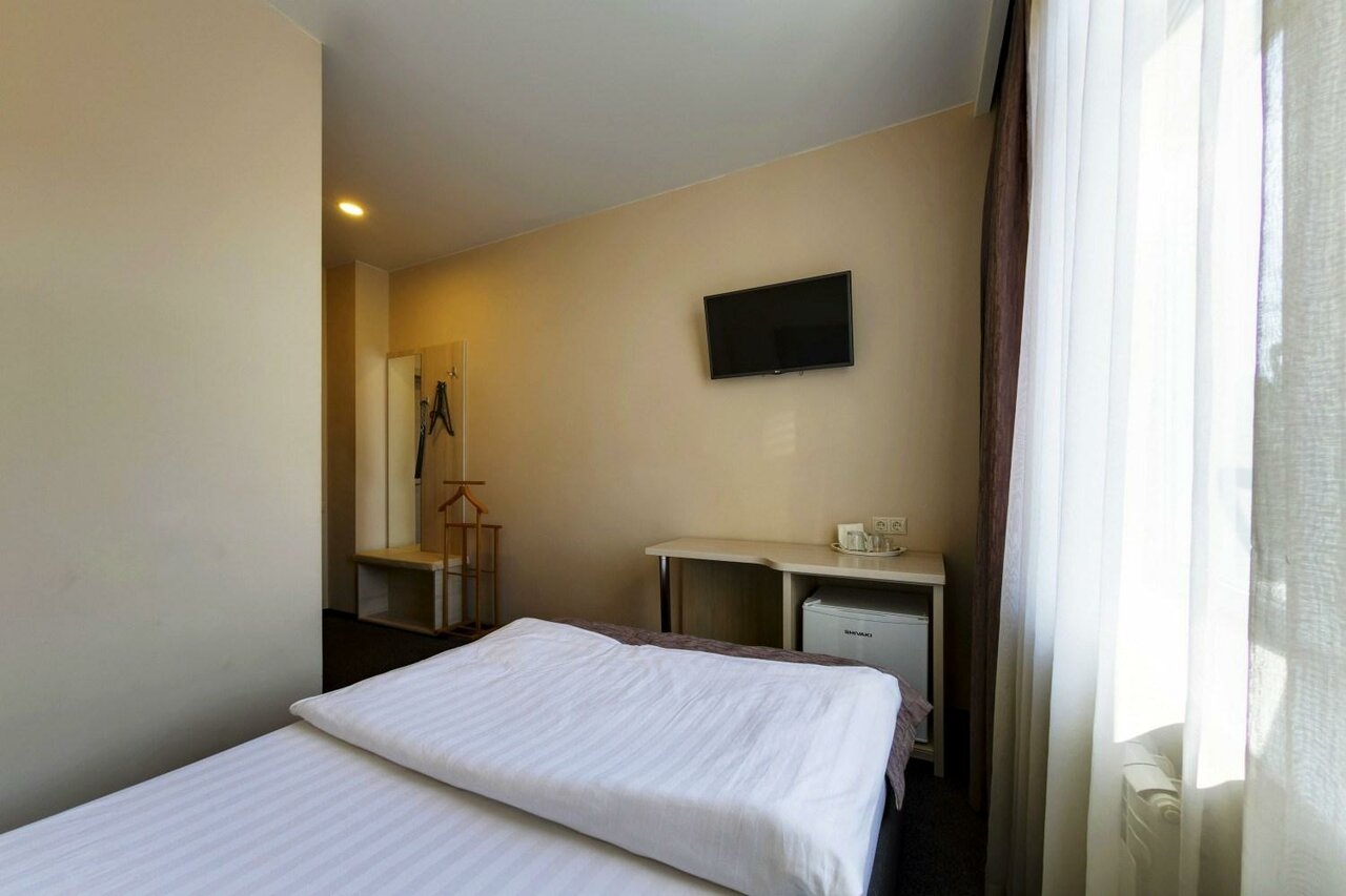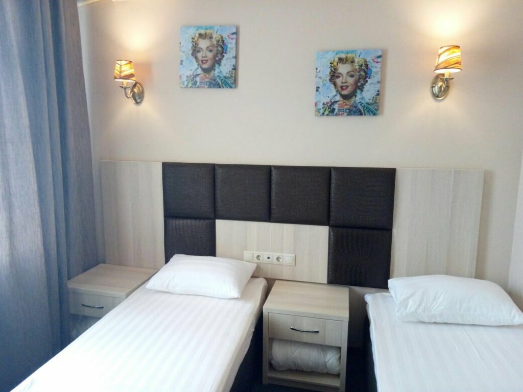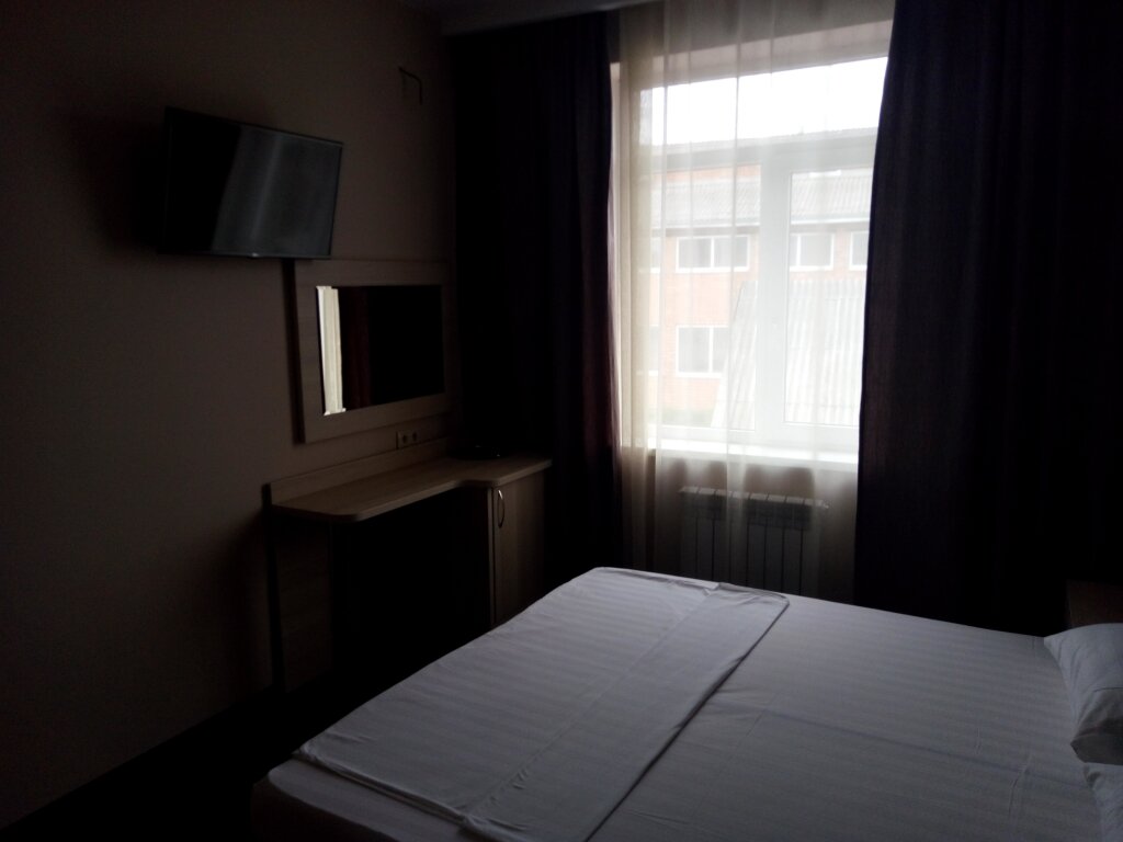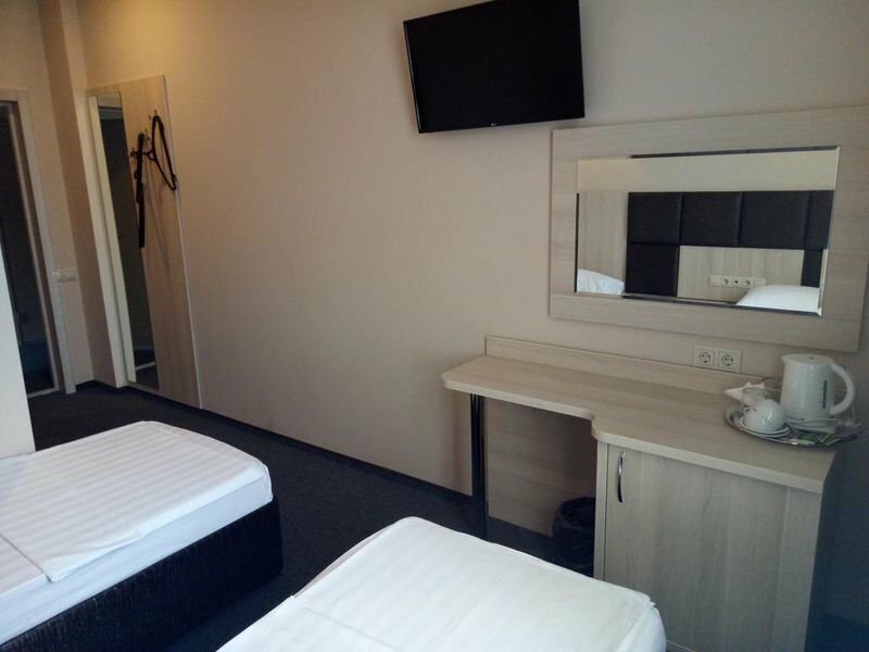 Останавливались с друзьями на одну ночь по пути на море. Взяли два номера. В нашей комнате было грязное пятно на тумбочке, в туалете грязная душевая и какая-то сломанная полка. Не было ни одноразовых шампуней, ни геля, ни щёток, хотя хотелось принять душ. На окне не стоит сетка (стояла рядом с окном), из-за чего нас заели комары и мы просто не смогли спать. Кондиционер включать не стали, так как он находился над кроватью и мог легко продуть. В номере друзей вообще был бардак, будто там не убирали. Душевая вся грязная и забитый слив. Не было ни гелей, ни шампуня. На окне так же не было сетки, и в комнате тоже. Уехали пол 5 утра, так как невозможно было оставаться. Не рекомендуем. Цена слишком высокая для таких условий. Больше туда не вернёмся.