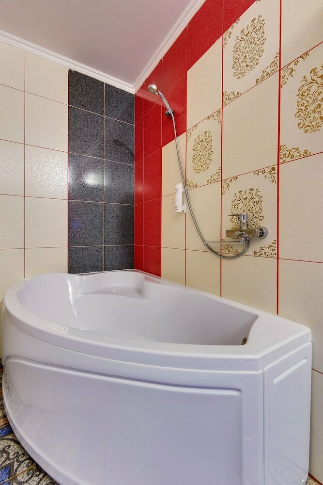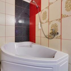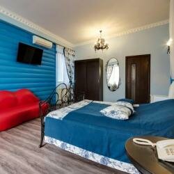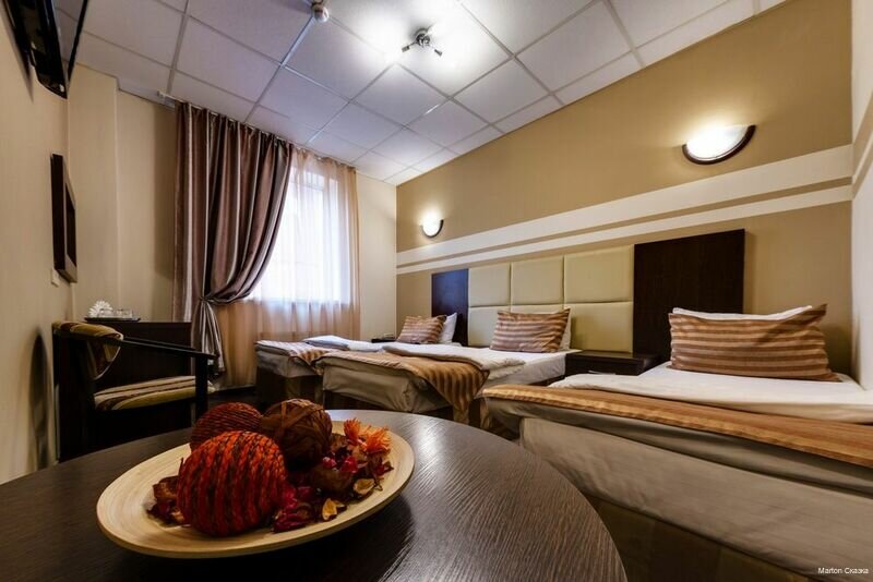 Номера большие, выбирали по картинке на 1 ночь. Внешне все прекрасно. 1. В действительности избегают уплаты налога, пытаются принудить оплатить переводом или наличкой. 2. В номерах нет чайника. По логике тогда должен быть кулер на этаже. Но нет, он находится на 1 этаже. Спускаться с 4 этажа по убийственной винтовой лестнице вообще не комильфо) 3. Ужасная винтовая лестница. С которой вполне реально убиться. Отсутствие лифта. 4. Нет фена. Нет Геля для душа и шампуня. Контейнер для Геля был пустой. Не советую. Даже на 1 ночь. Номера не пригодны для проживания. Чисто одна звезда за площадь и мебель в номерах.