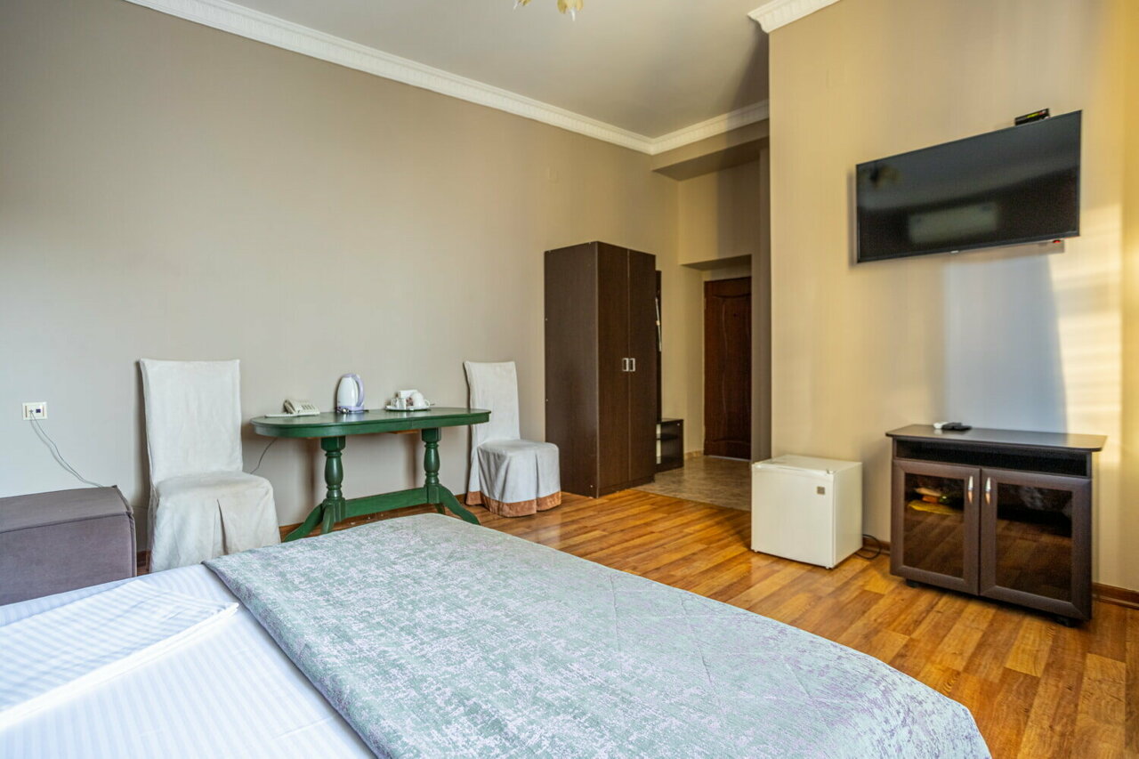 - Чистый, просторный номер с холодильником, телевизором и сплитом.