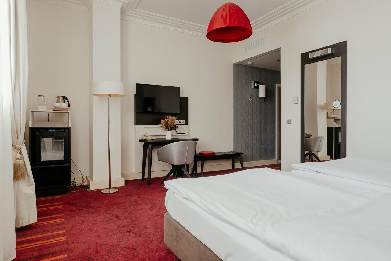 Хороший отель на твердую 4, вежливый персонал, вкусные завтраки в виде шведского стола, отличное расположение в центре города. Немного шумновато из-за мотоциклов или машин без глушителей или с сабами, но это как повезет с расположением окон. Можно с собаками!