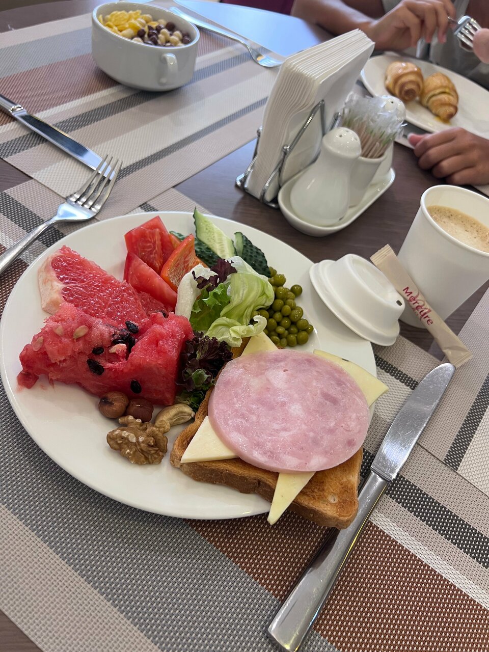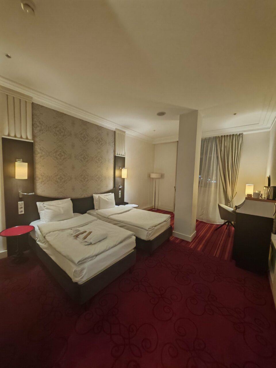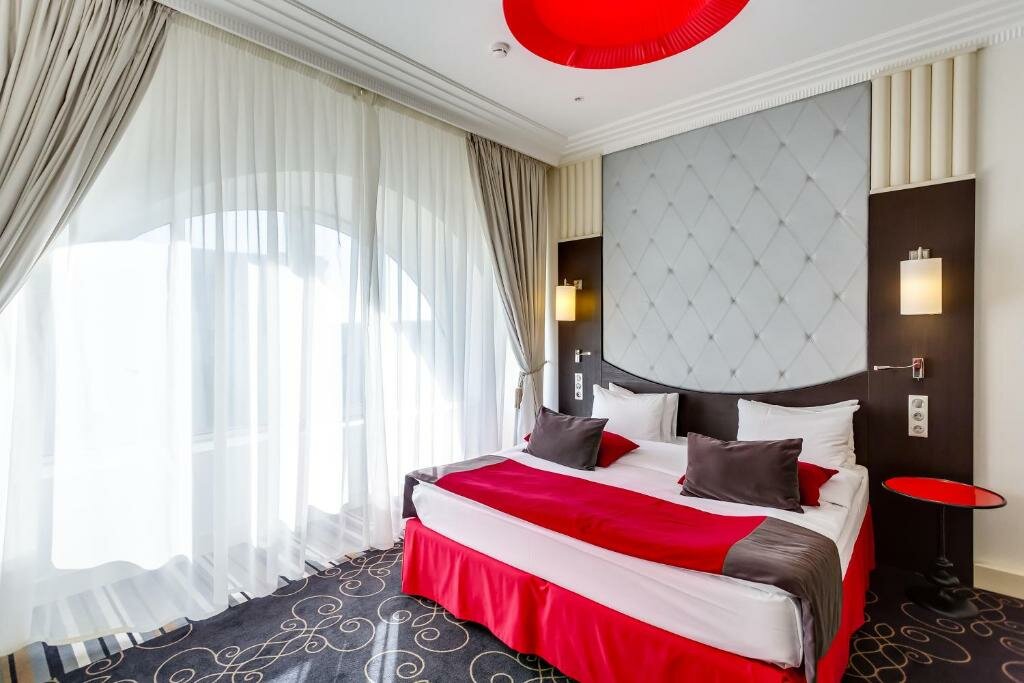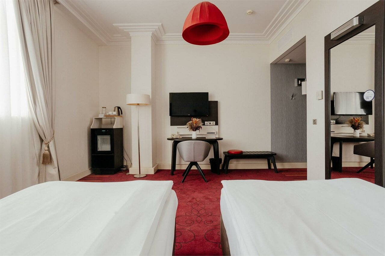 Отель превзошел все ожидания, брали смежные стандарты чтобы переночевать с детьми по дороге домой. Два очень больших, очень чистых номера на 8 этаже. Удобные кровати и подушки, просторные ванные комнаты. Завтрака- два вида каши, 3 вида яиц, овощи, сыры/колбасы, сладенькое , фрукты, кофе отличный. Девушки на ресепшен подарили по игрушечке детям в общем только положительные впечатления!