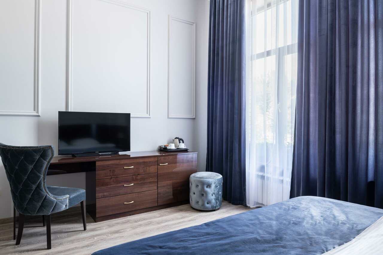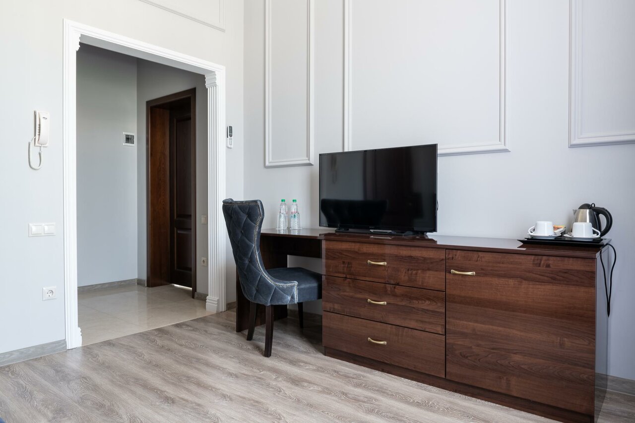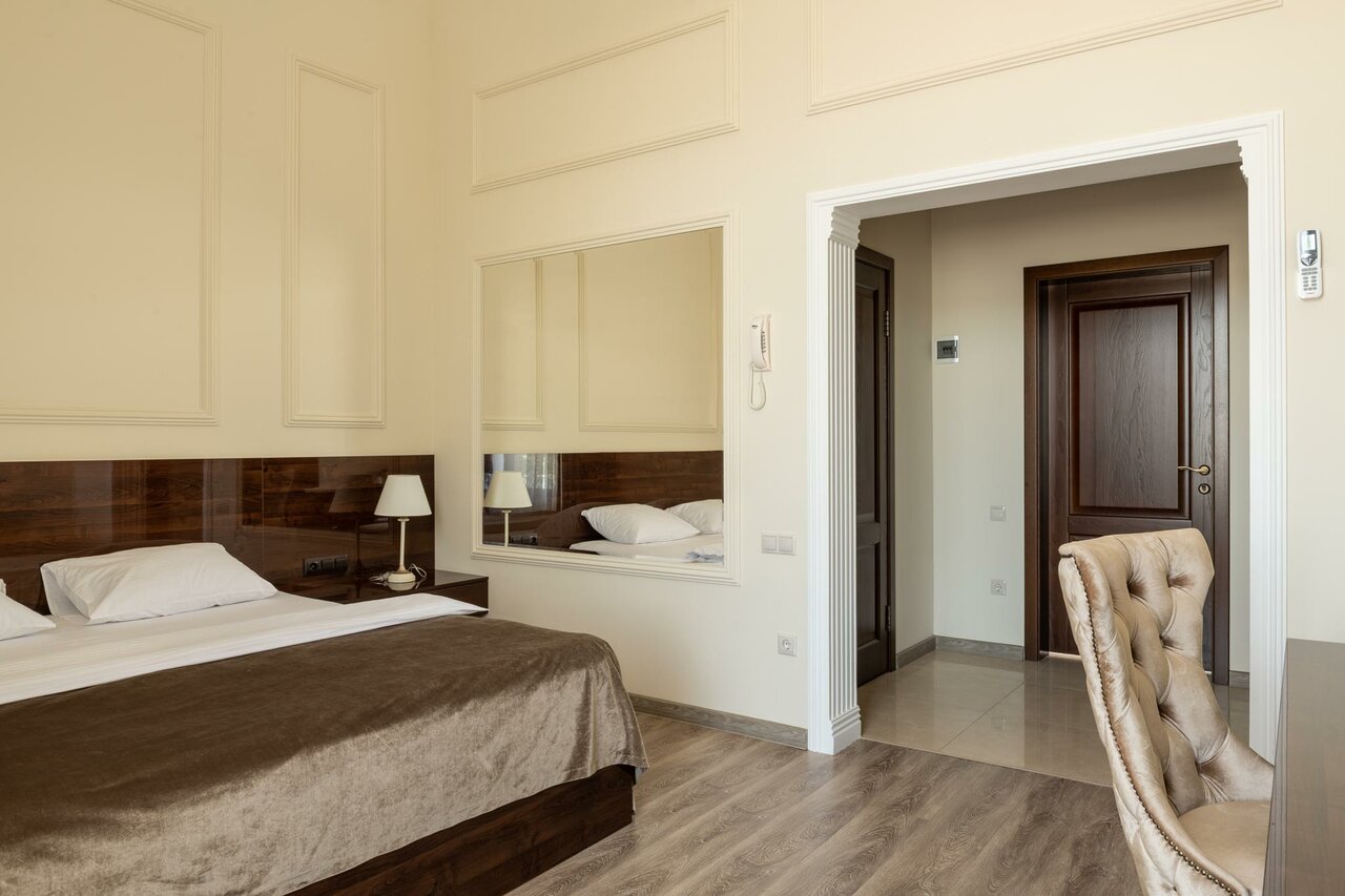 - Просторные номера с высокими потолками.