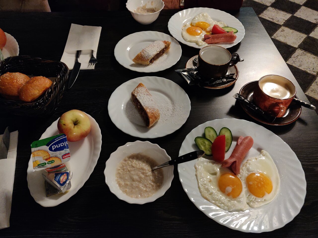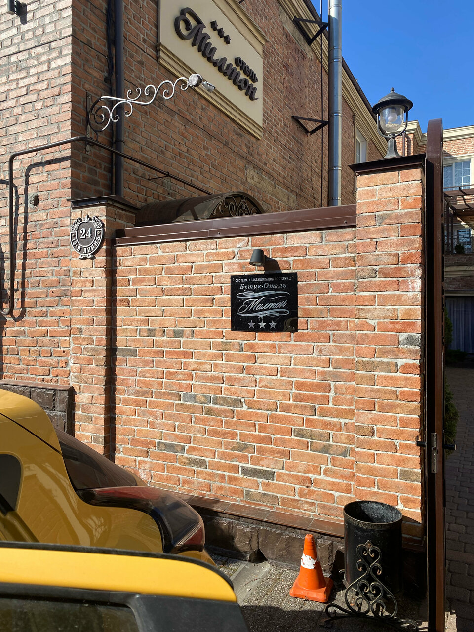 Отель — супер! Очень уютный! Отличный сервис! Есть веранда, бар, гастропаб. Полный комплект гигиенических принадлежностей. Брал номер на одного, с полуторной кроватью. Отлично спалось. Завтраки очень качественные: каша, омлет с сосиской, штрудель) внутри дворика есть парковка на пару мест, остальные на улице.