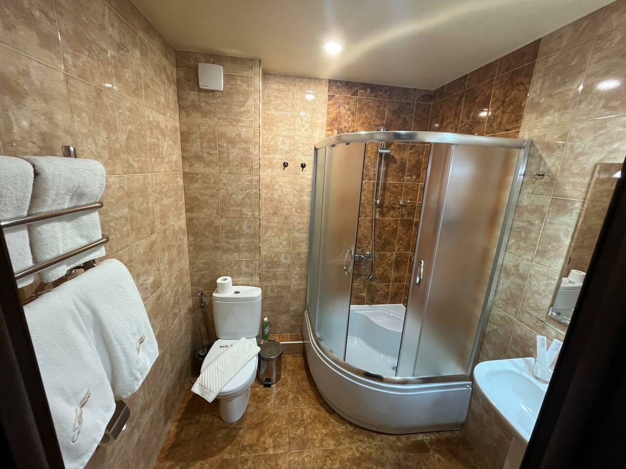 Всё понравилось. Особенно в отелях раздражает гель в пакетиках и мыло, которыми намылился не возможно, здесь всё норм, гель и шампунь сколько нужно в ёмкостях с дозаторами. Стоянка во дворе кто раньше приедет. Внутри уютно, персонал отзывчивый. Завтрак не брали.