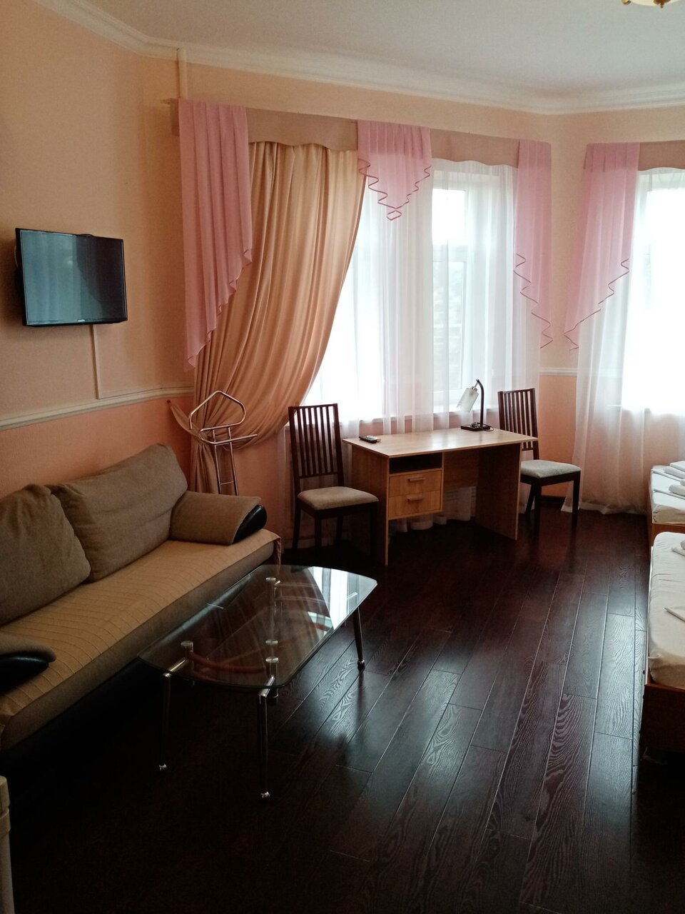 Красивый интерьер, чисто, кормят… Из минусов — убрать повода висящие за телевизором… На одну ночь точно можно остаться. Больше не пробовали
