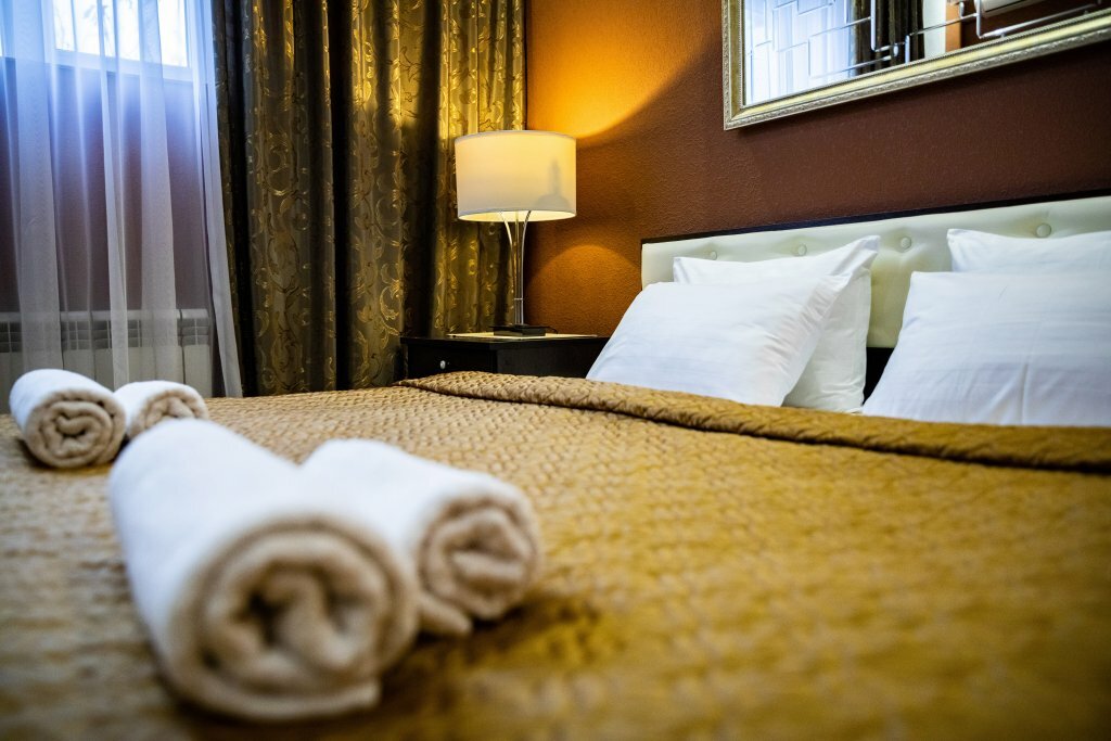 Прекрасный НОВЫЙ отель, очень понравилось !!! Красивый, тёплый, уютный номер, новая современная мебель, идеальная чистота. Кровати с удобными матрасами, белоснежное бельё, (такие же полотенца), мягкое одеяло. Кроме того, в номере был очень удобный мягкий кожаный диванчик и большой журнальный столик, тумбочки, очень красивая стильная отделка, номера и сан. узла. Большой телевизор с плоским экраном, новенький чистый ,на тумбочках с двух сторон светильники. В номере была отличная шумоизоляция, ничто не мешало комфортному отдыху. Цена соответствует качеству, можно заказать вкусный, сытный завтрак. Гостиница расположена в очень удобном месте: в 10 минутах ходьбы рынок ,проспект Стачки ,парк, рядом с отелем магазины на любой вкус, аптеки, транспорт и т.д. Очень доброжелательный, внимательный, отзывчивый, воспитанный персонал, все общительные, приятные люди! Хотим поблагодарить за всё, и пожелать процветания